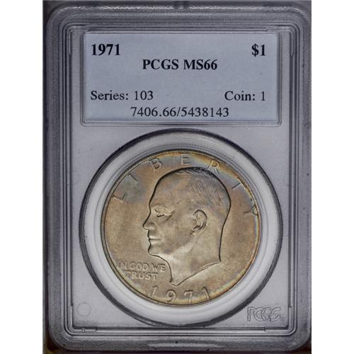 1971 $1 MS66 PCGS. Lustrous with pale green-gray, lemo 1971[$1] MS66 PCGS.