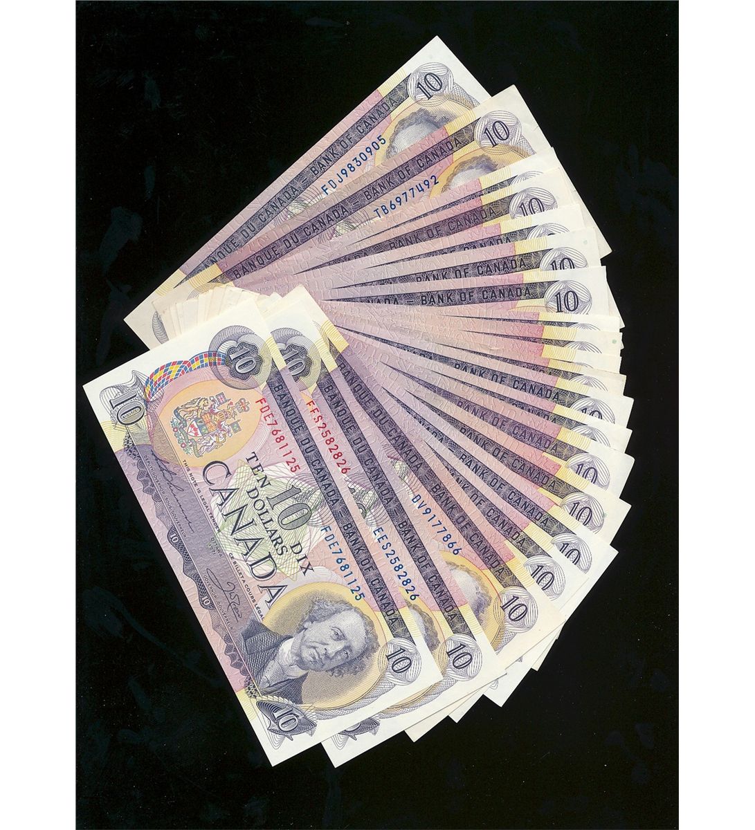 1971 $10 BC-49 Lot; includes 20 notes with mixture of signatures. VF to AU.