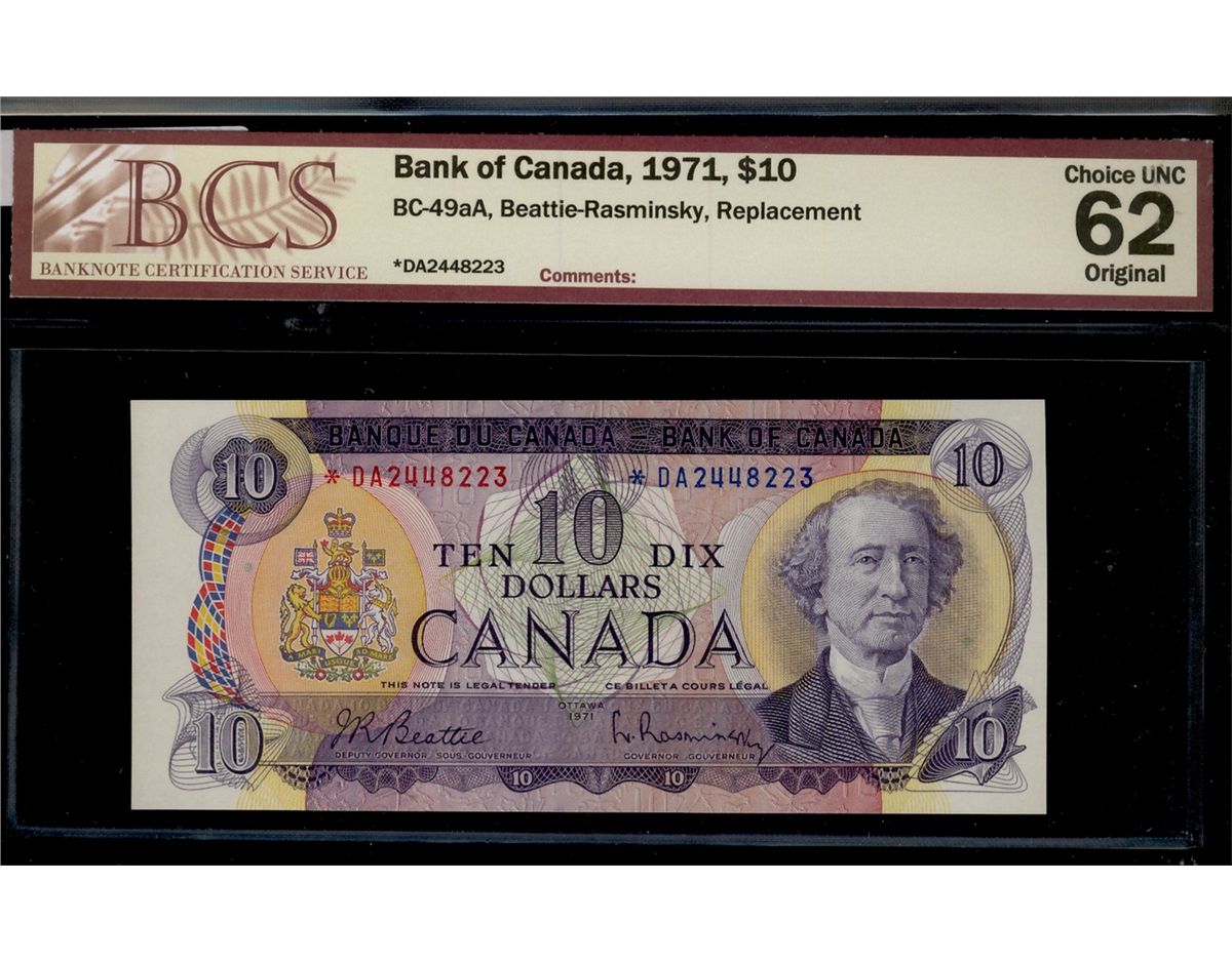 1971 $10 BC-49aA #*DA2448223, BCS CH UNC-62, Original