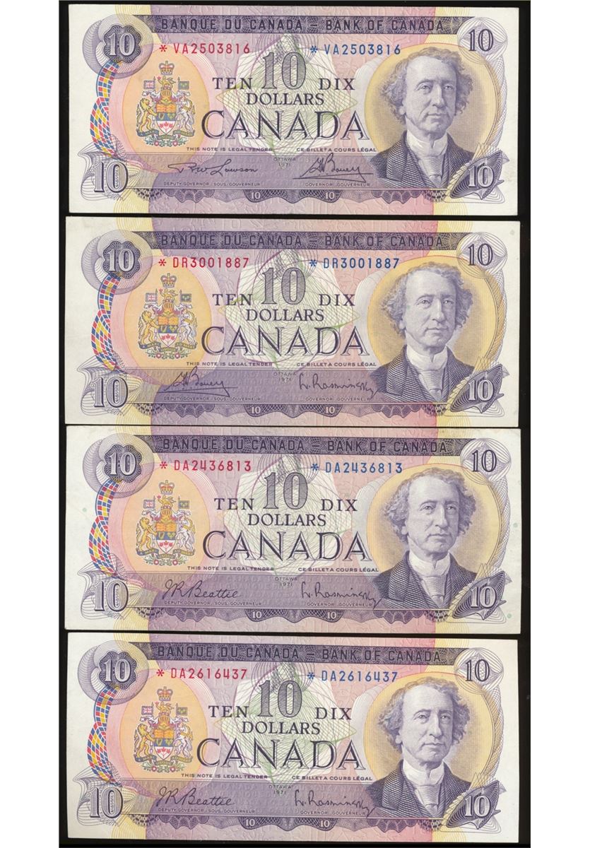 1971 $10 BC-49aA #*DA2616437, *DA2436813, BC-49cA #*VA2503816 & BC-49bA #*DR3001887. Lot of 4 notes VF to EF.