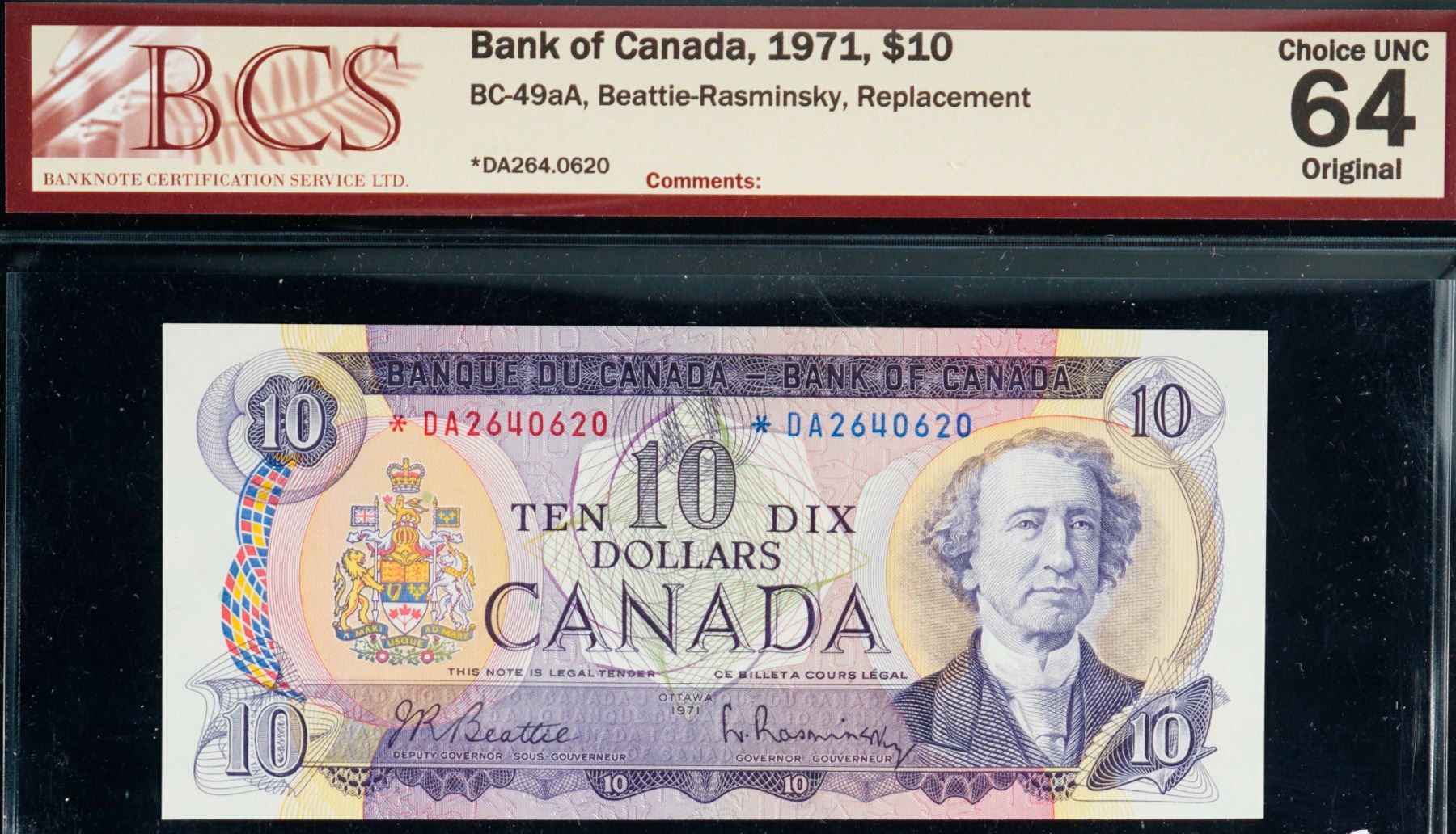 The cataloguer has taken every reasonable measure to ensure that all of the lots in this sale are as described and genuine. All raw coins and banknotes have been graded by the cataloger or the auction house which represent our best professional opinion. To grade coins and banknotes, we use Canadian grading standards, 42 years of experience and good conscience. However, grading is a subjective description in the opinion of the cataloger or the auction house. Among experts there are often differences of opinion on the grading and the eye appeal of a coin. The strike and the state of preservation are often debated. The Canadian Numismatic Company acts as an agent between consignors and buyers. The Canadian Numismatic Company does not guarantee that any coin or banknote cataloged will meet the standards, or the grade, of any third party grading companies. No warranty, whether impressed or implied. Items are as is, no warranty given. We cannot accept responsibility and waive all liability resulting in financial losses, and or incidentals accruing from the sale of any items, nor can we guarantee that items graded by third party services will grade the same if submitted to a different grading service or re-submitted to the same company. Statements by The Canadian Numismatic Company regarding the condition, the eye appeal, the strike and the population of items are for guidance only. All lots offered are sold "AS IS". Title to all lots remains with the auction house until paid for in full by the purchaser. But they are held at the risk of the purchaser once the time of the sale.