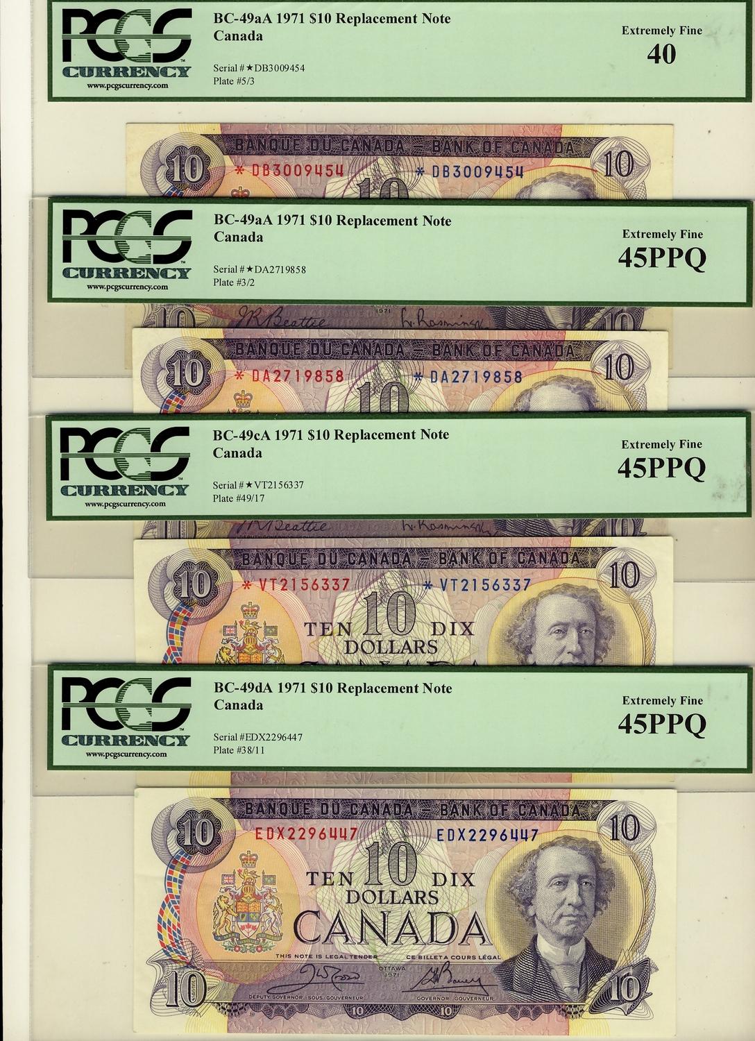 1971 $10 BC-49aA #*DB, *DA, BC-49cA *VT & BC-DA #EDX Steel . Lot of 4 notes all PCGS graded EF45 except *DB which grades EF40.