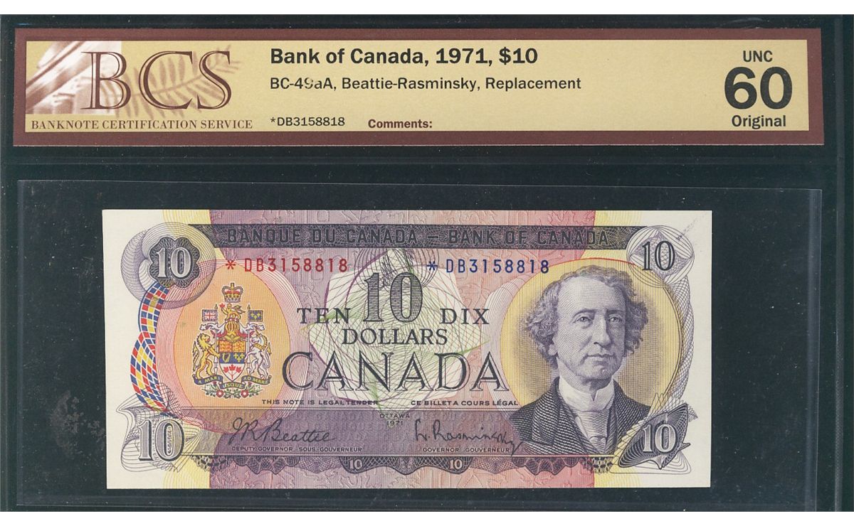 1971 $10 BC-49aA #*DB3158818 BCS UNC60.