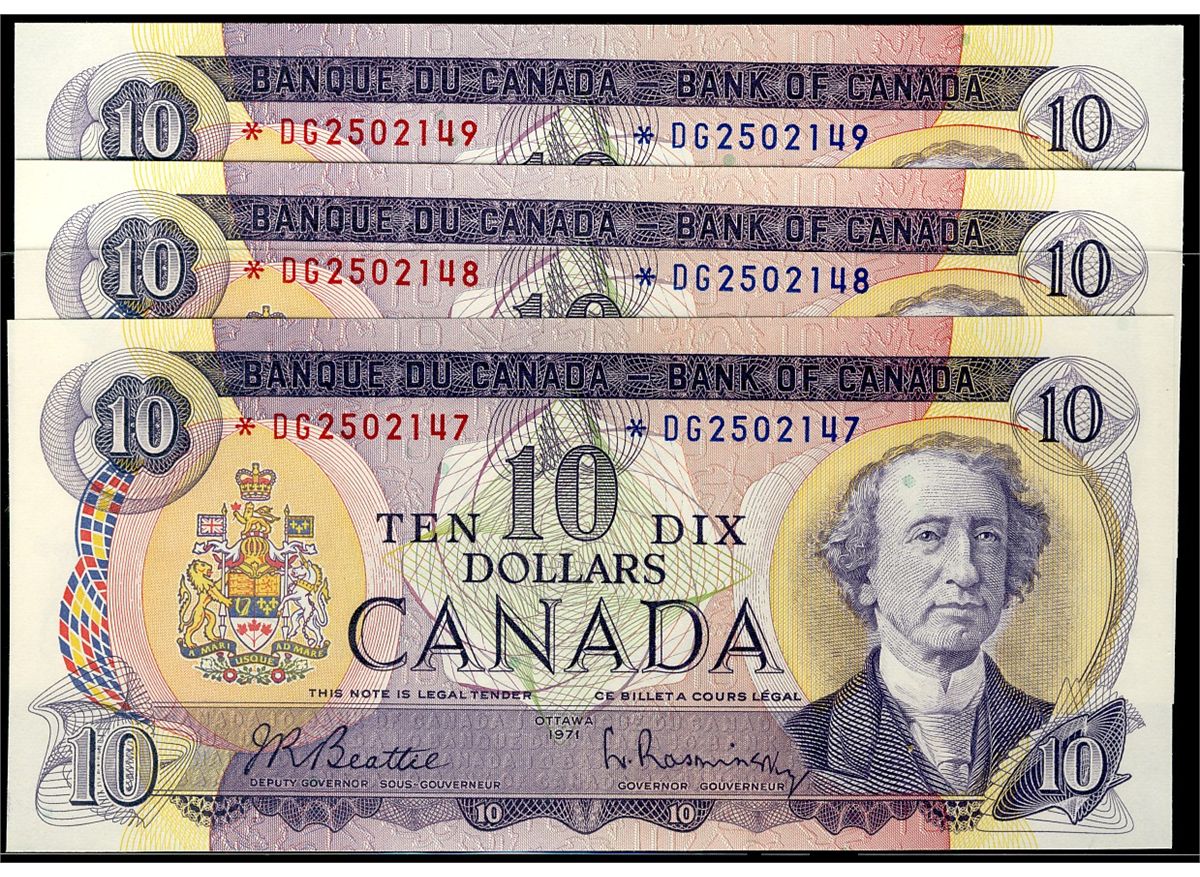 1971 $10 BC-49aA #*DG2502147 - 2149. Lot of 3 notes all nice Original Choice UNC.