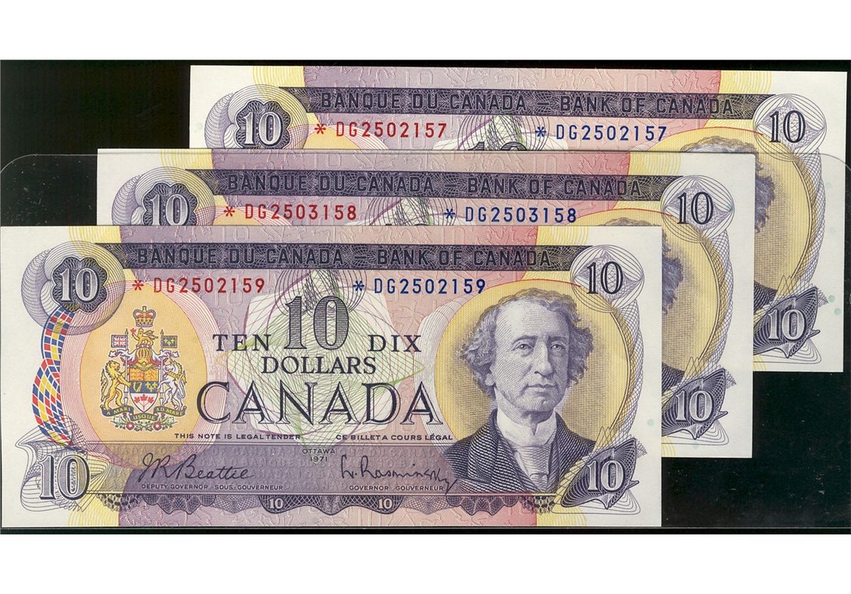 1971 $10 BC-49aA #*DG2502157 - 2159. Lot of 3 notes all nice Original Choice UNC.