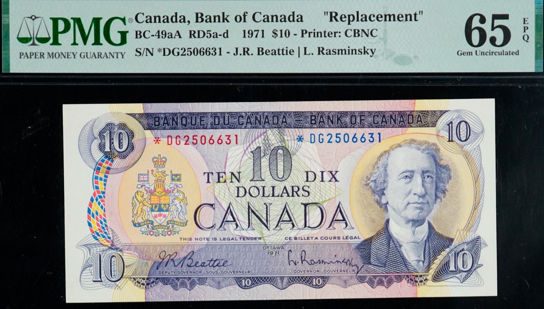 1971 $10 BC-49aA *DG2506631 PMG Gem Uncirculated-65 EPQ