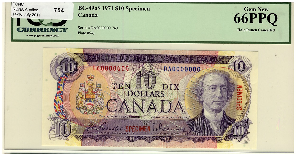 1971 $10 BC-49aS SPECIMEN PCGS UNC66PPQ