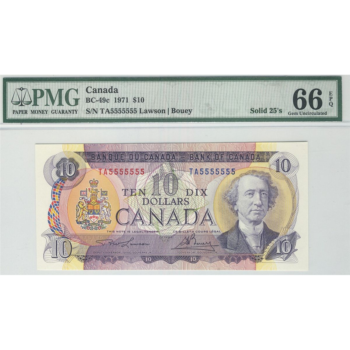 1971 $10 BC-49c SOLID #TA555555. PCGS Gem UNC66PPQ.