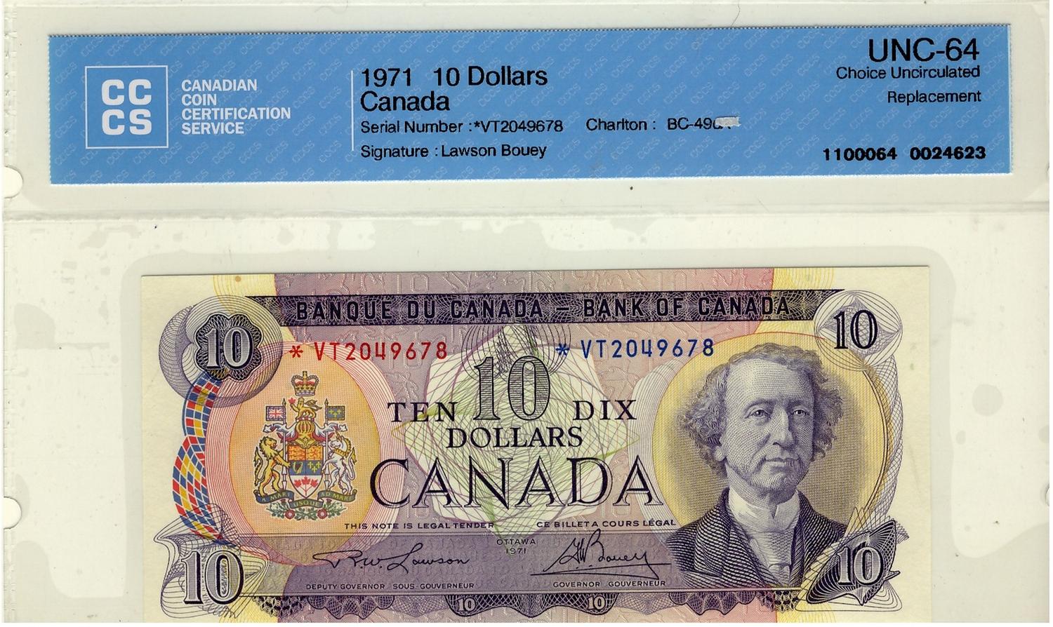 1971 $10 BC--49cA CCCS UNC 64 *V/T2049678