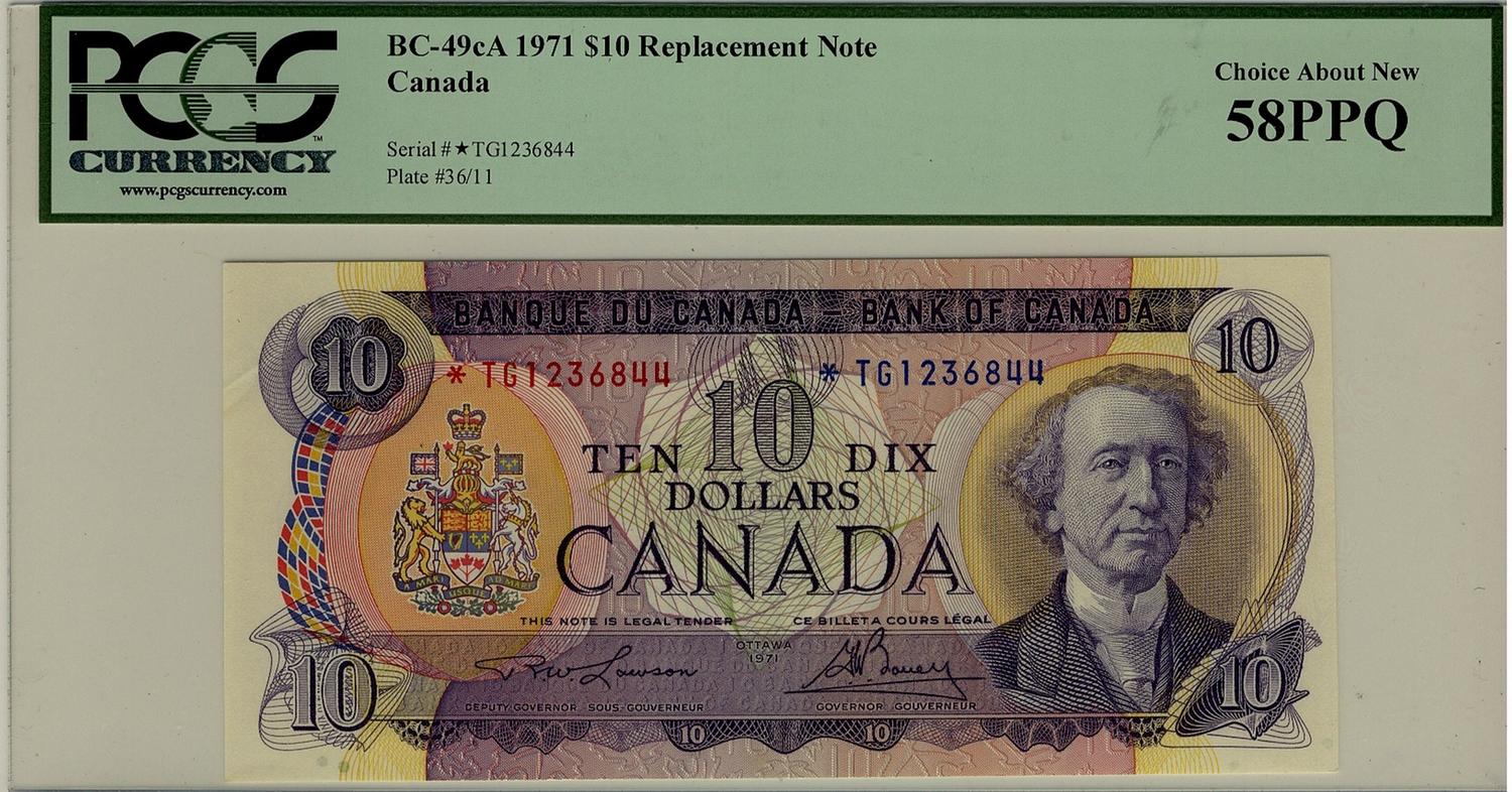 1971 $10 BC-49cA #*TG1236844 PCGS AU58PPQ