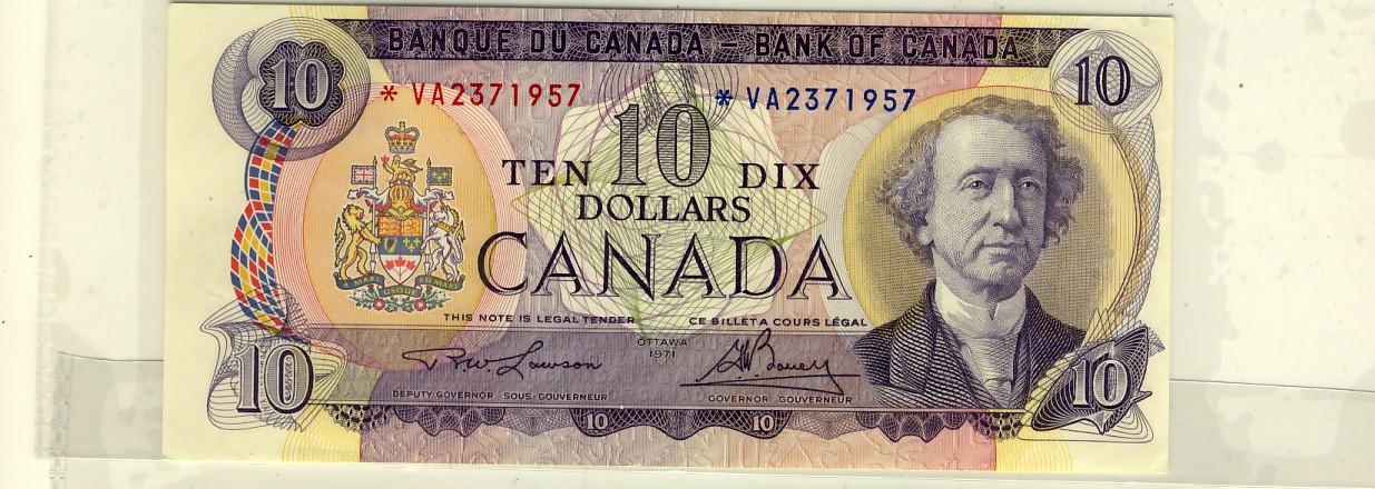 1971 $10 BC-49cA #*VA2371957. Original UNC example.