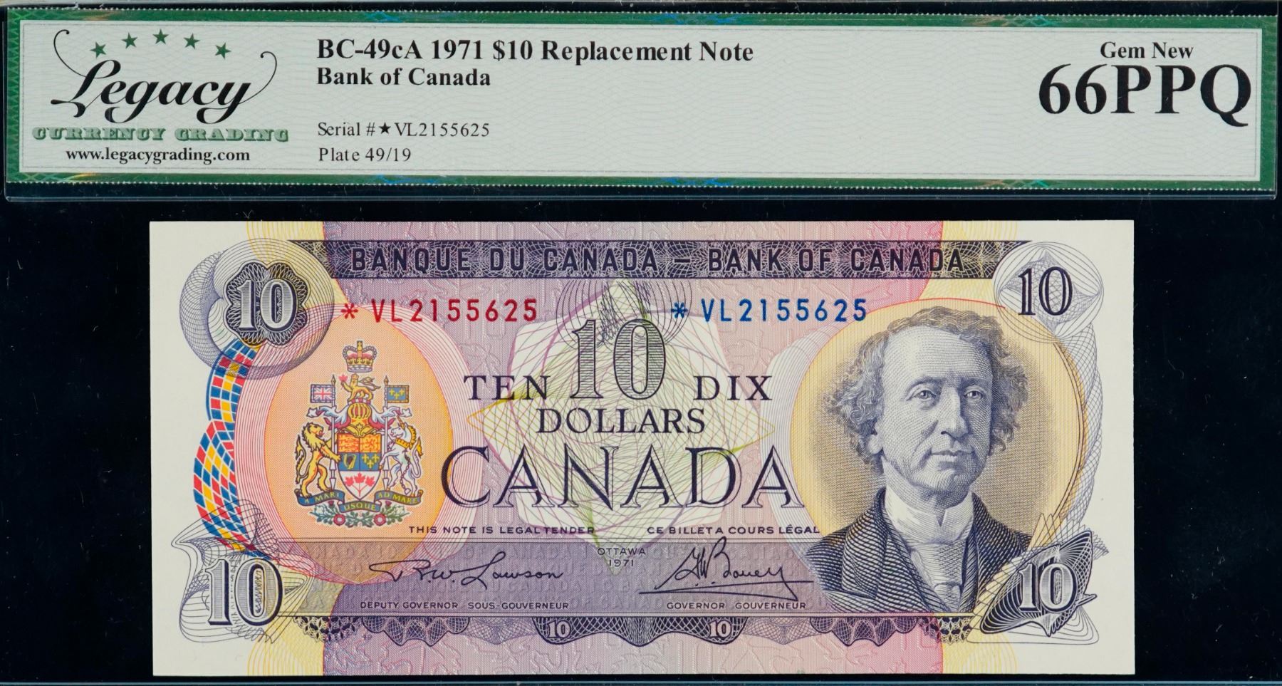 1971 $10 BC-49cA #*VL2155625, LCG Superb Gem Uncirculated-66PPQ.