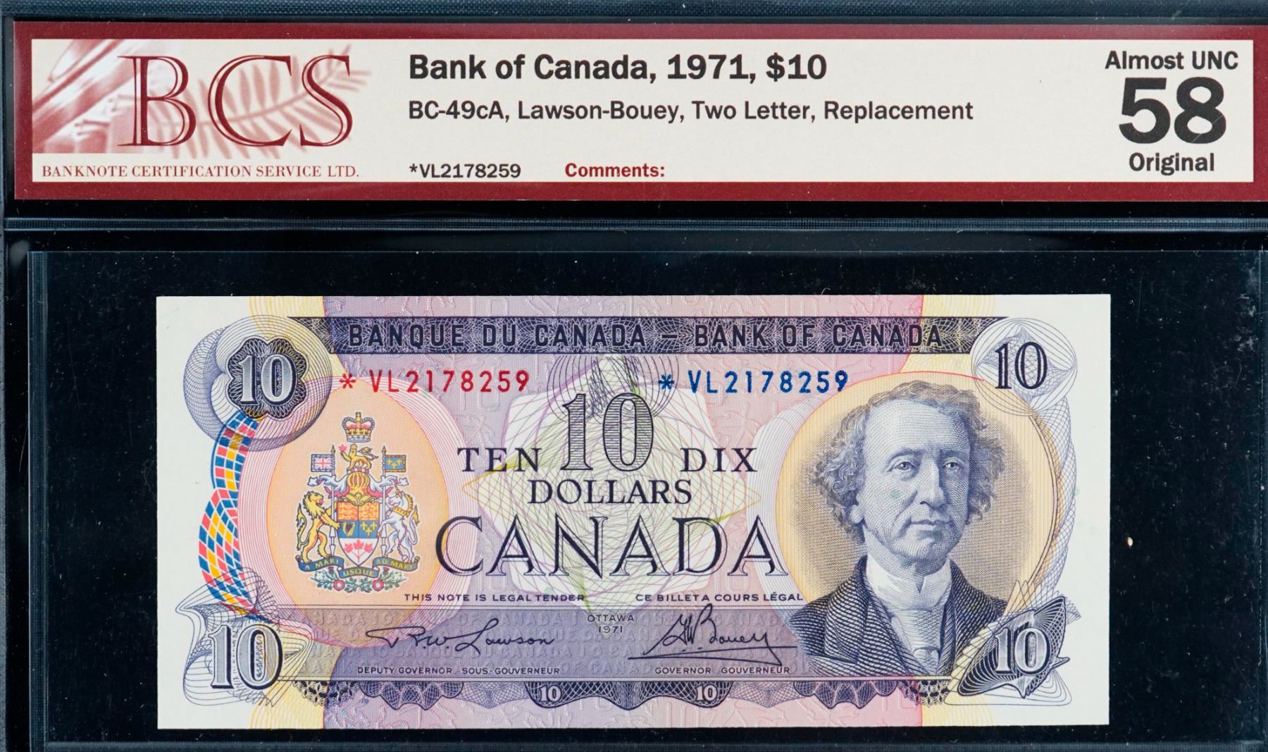 1971 $10 BC-49cA #*VL2178259 BCS AU58 Original