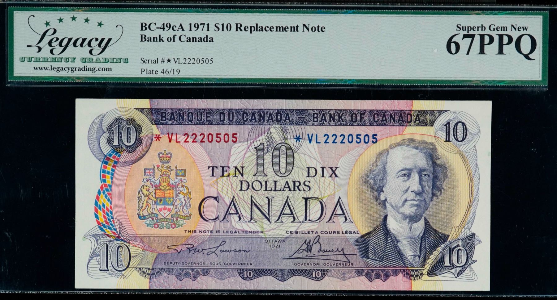1971 $10 BC-49cA #*VL2220505 LCG UNC67PPQ