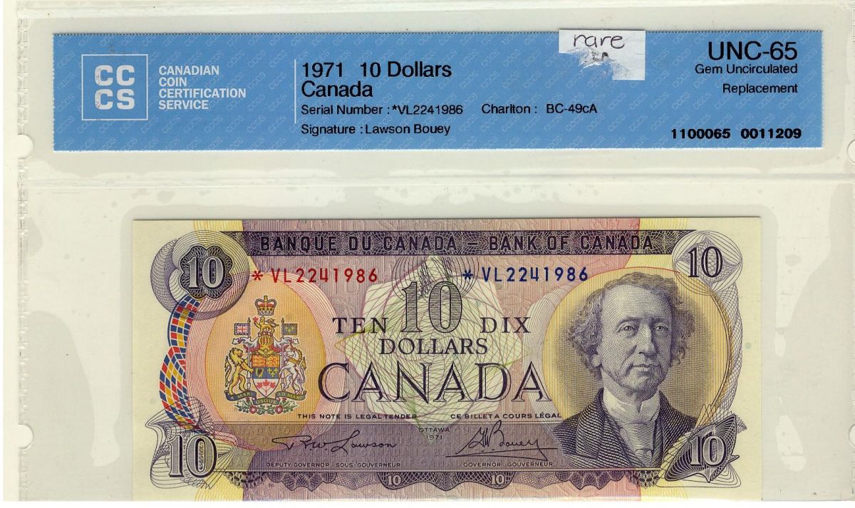 1971 $10 BC-49cA *VL2241986 CCCS UNC65
