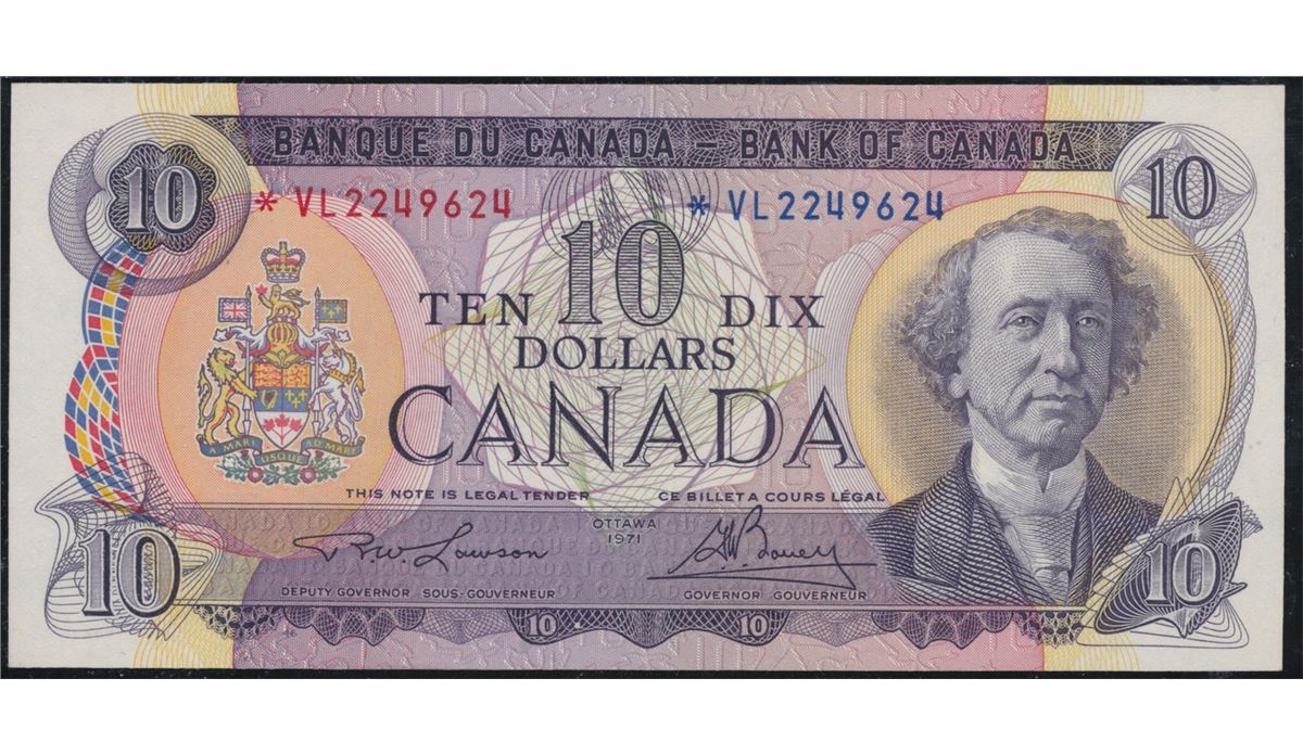 1971 $10 BC-49cA #*VL2249624, BCS UNC60.