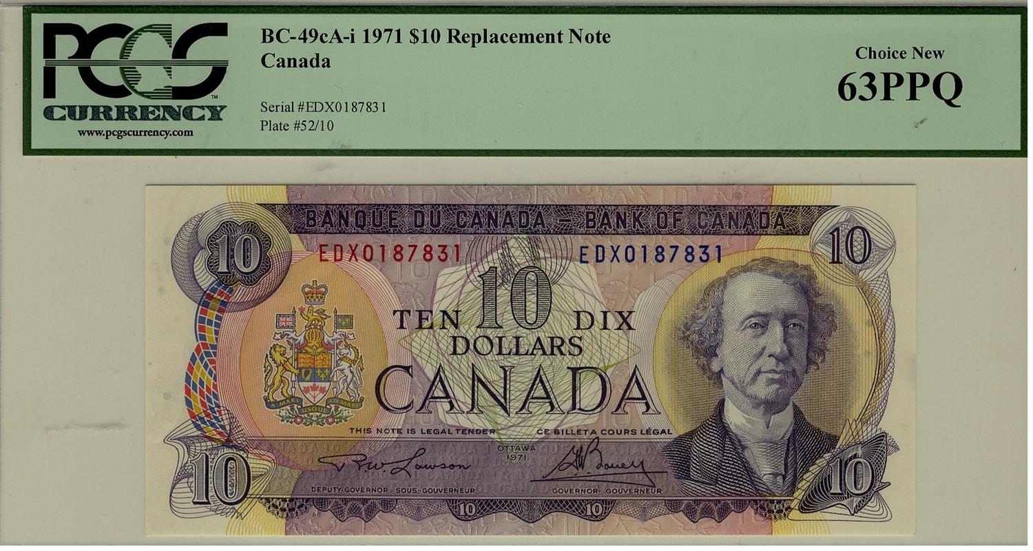 1971 $10 BC-49cA-i #EDX0187831 PCGS CH UNC 63PPQ. Scarce replacement note.