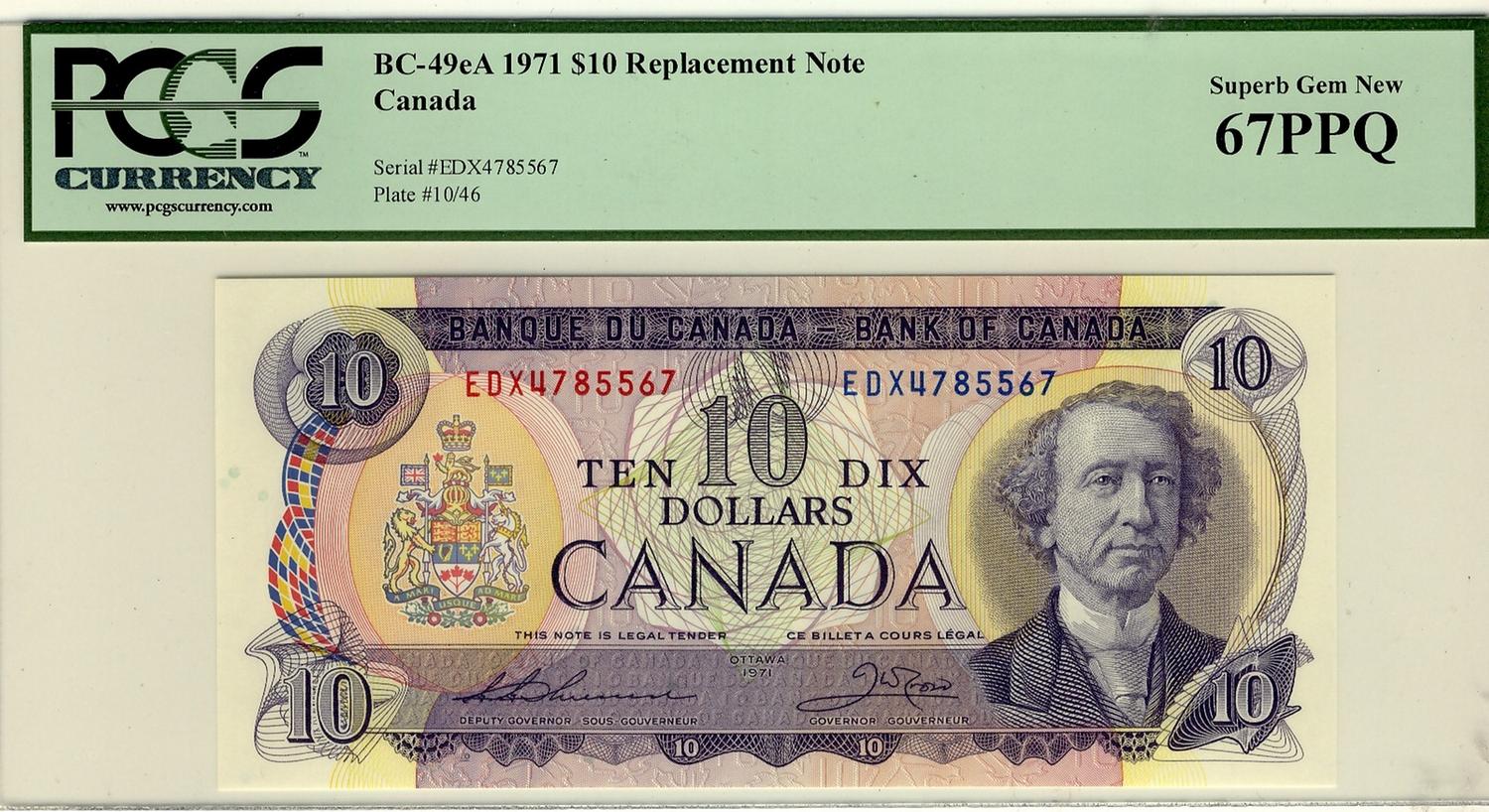 1971 $10 BC-49eA #EDX4785567 PCGS Superb GEM UNC 67PPQ.