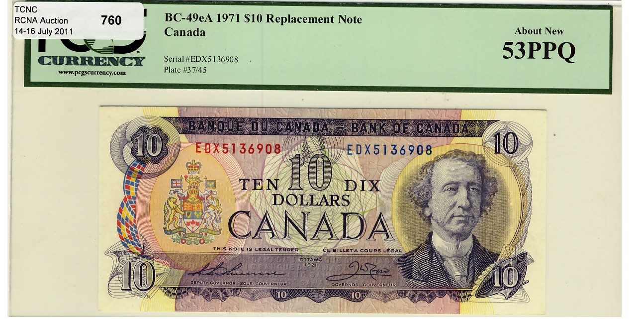 1971 $10 BC-49eA EDX5136908 PCGS AU53PPQ