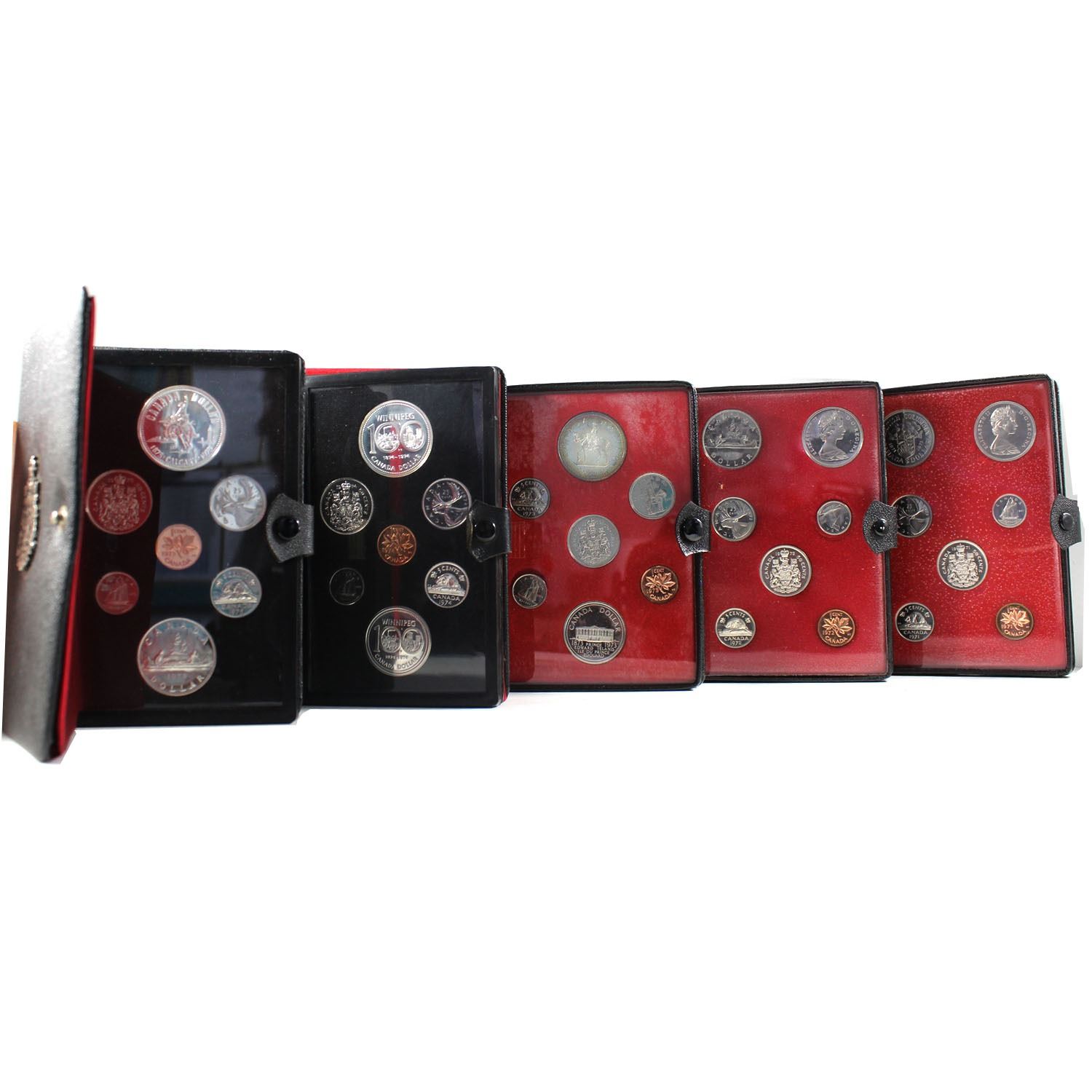 1971-1975 Canada Specimen Double Dollar Sets. 1973 & 1974 have COAs and 1971 & 1973 have outer sleeves (some coins may be toned). You will receive each set released from 1971 to 1975. 5pcs