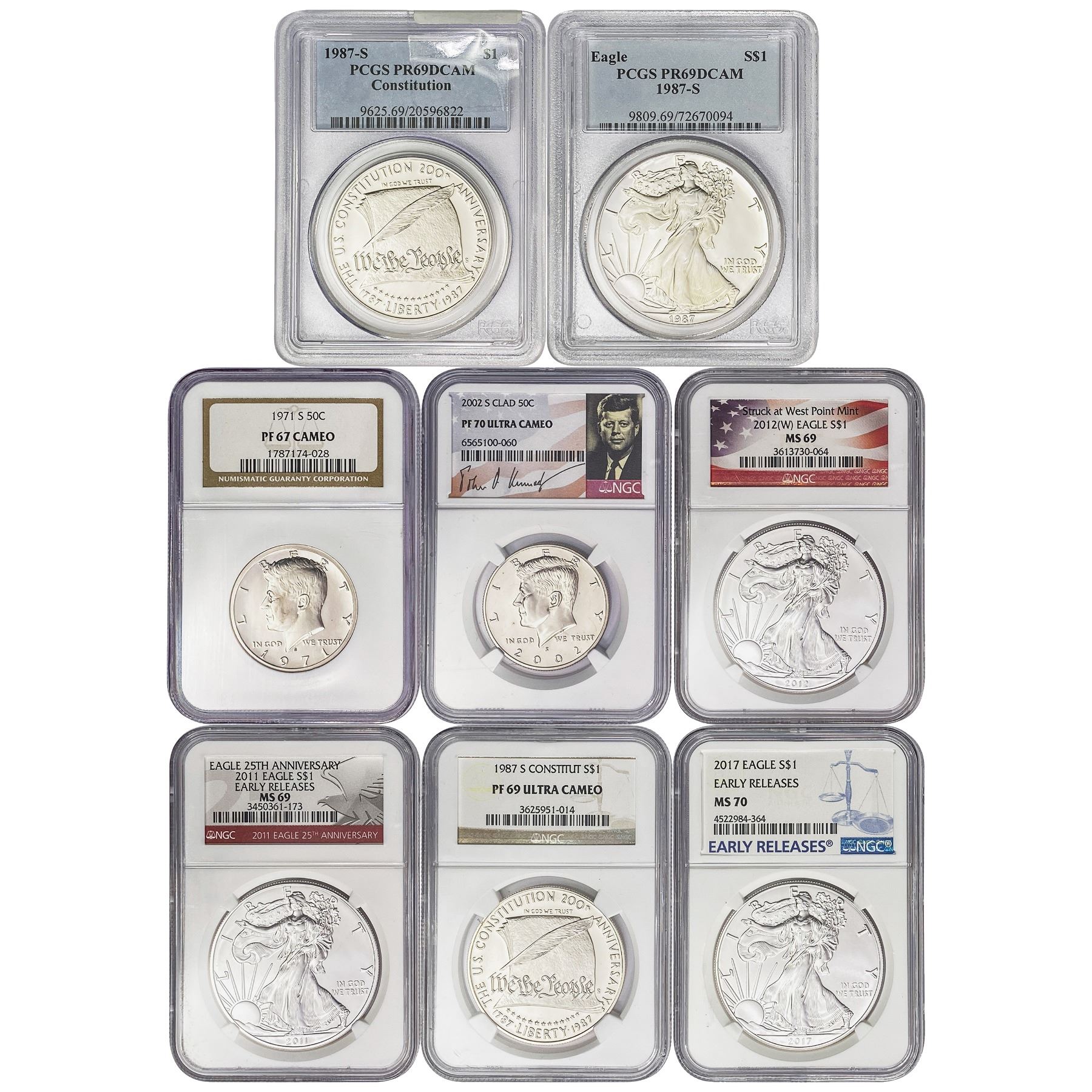 1971-2017 [8] US Varied Silver Coinage PCGS/NGC