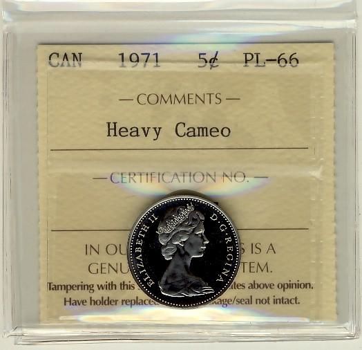 1971 5¢ ICCS PL66 Heavy Cameo.