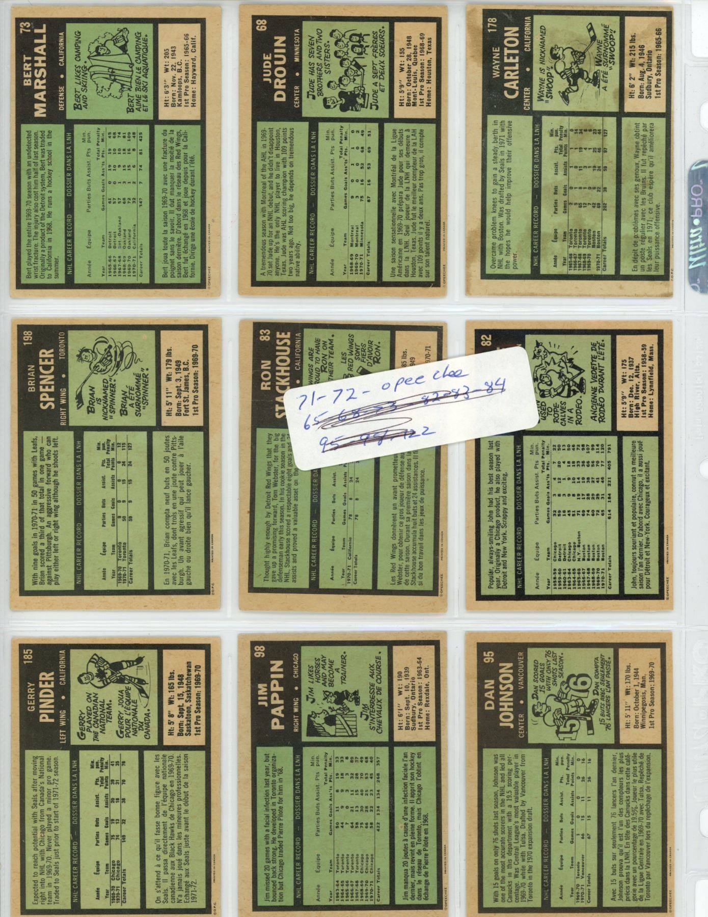 1971-72 9 card lot OPC
