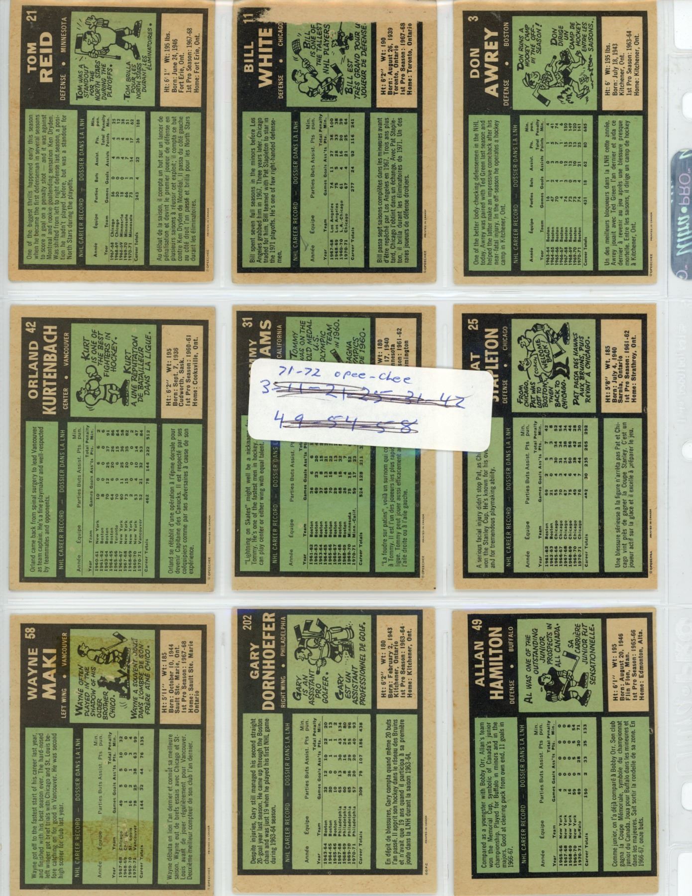1971-72 9 card lot OPC