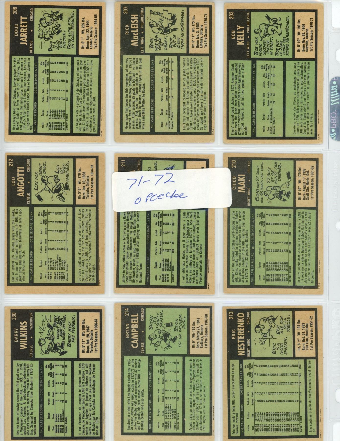 1971-72 9 card lot OPC