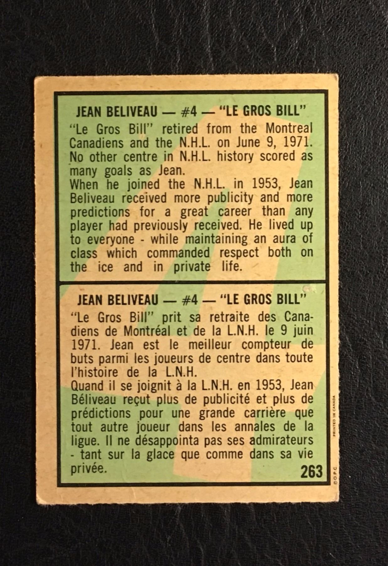 1971-72 JEAN BELIVEAU #263 O-PEE-CHEE HOCKEY TRADING CARD "LE GROS BILL"