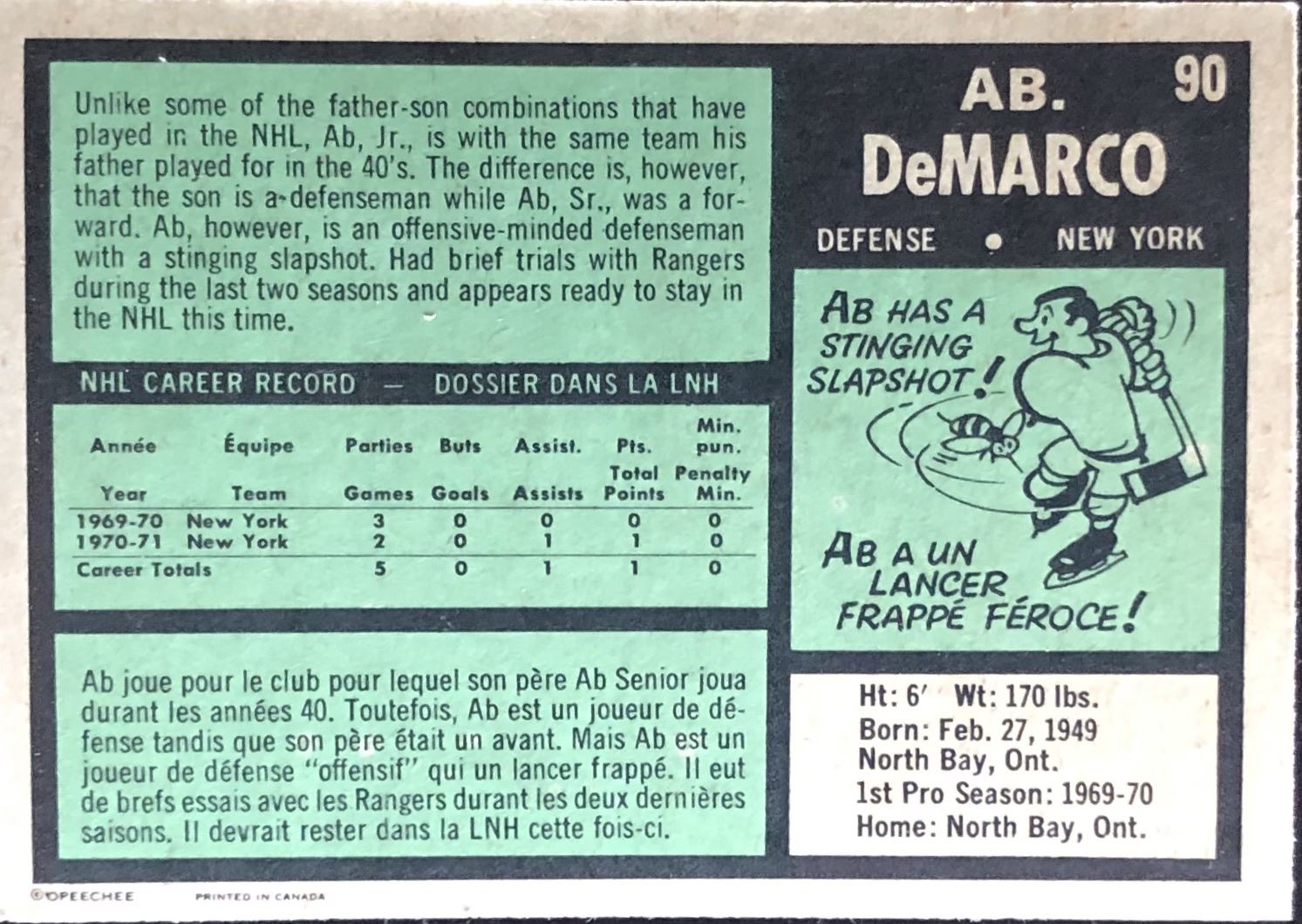 Card #90 NHL, hockey, vintage, OPC, rookie