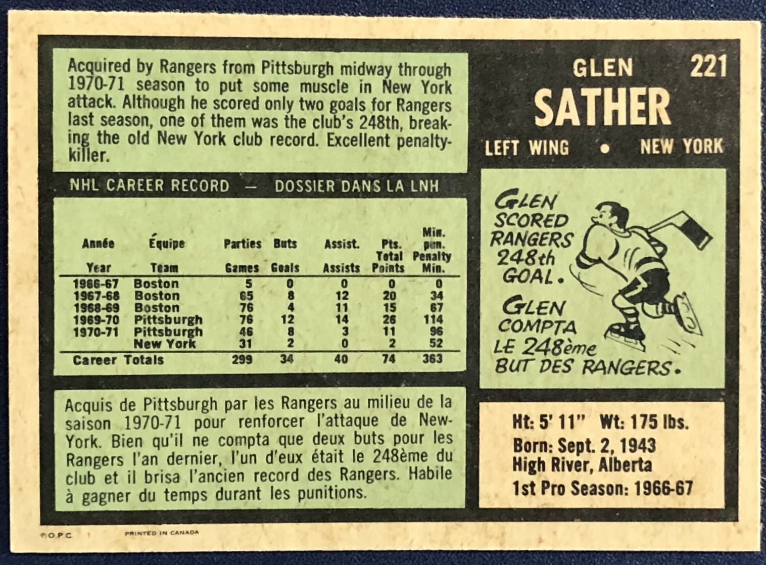 Card #221 NHL, hockey, OPC, vintage, hall of fame