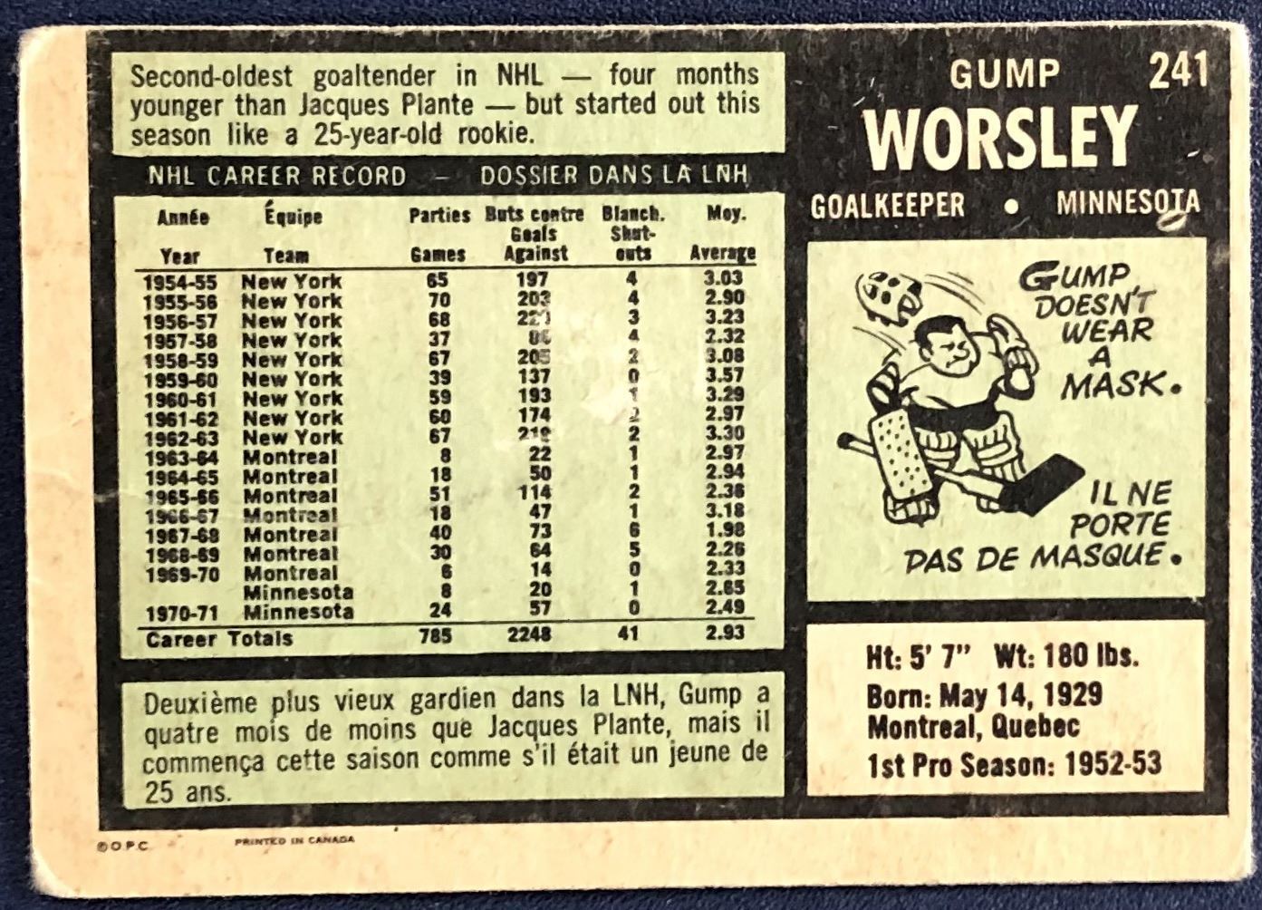 Card #241 NHL, hockey, OPC, vintage, hall of fame