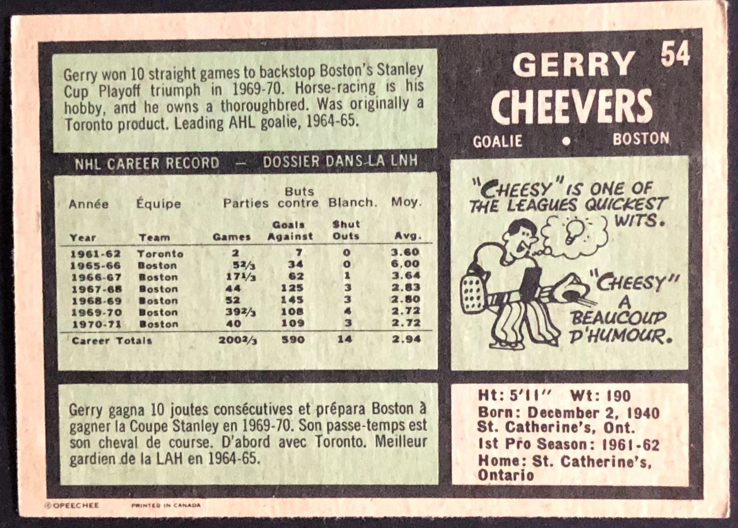 Card #54 hockey, OPC, vintage, hall of fame