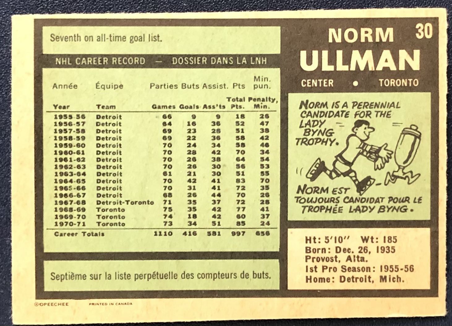 Card #30 NHL, hockey, vintage, OPC, hall of fame