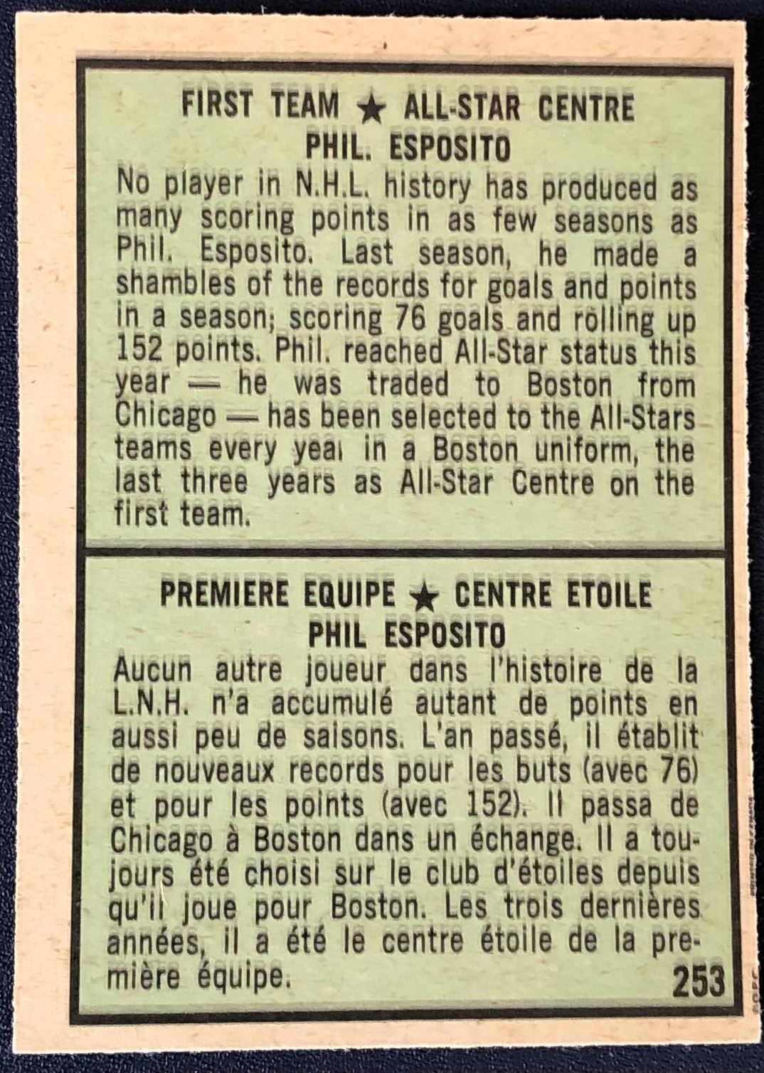 Card #253 vintage, hall of fame, hockey, NHL, OPC