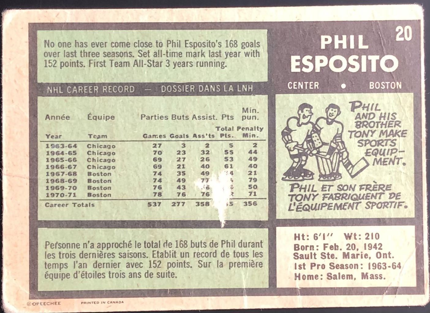 Card #20 NHL, hockey, OPC, vintage, hall of fame