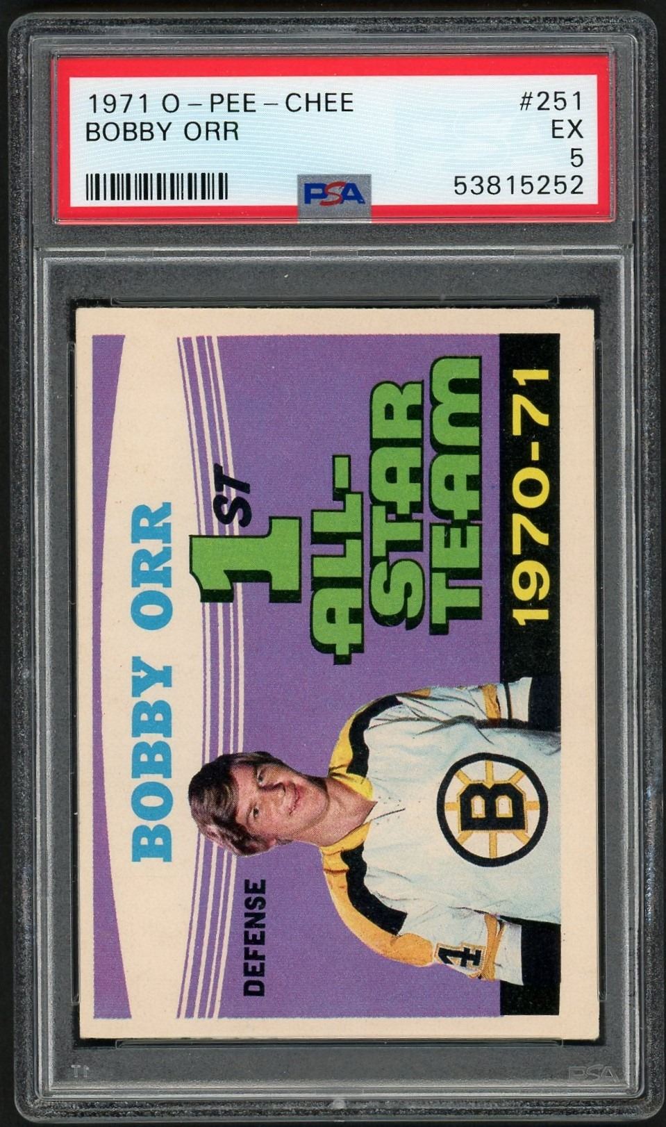Solid upper mid grade Orr AS card from the ever popular 71 OPC set, grading sharp 5 EX by PSA!