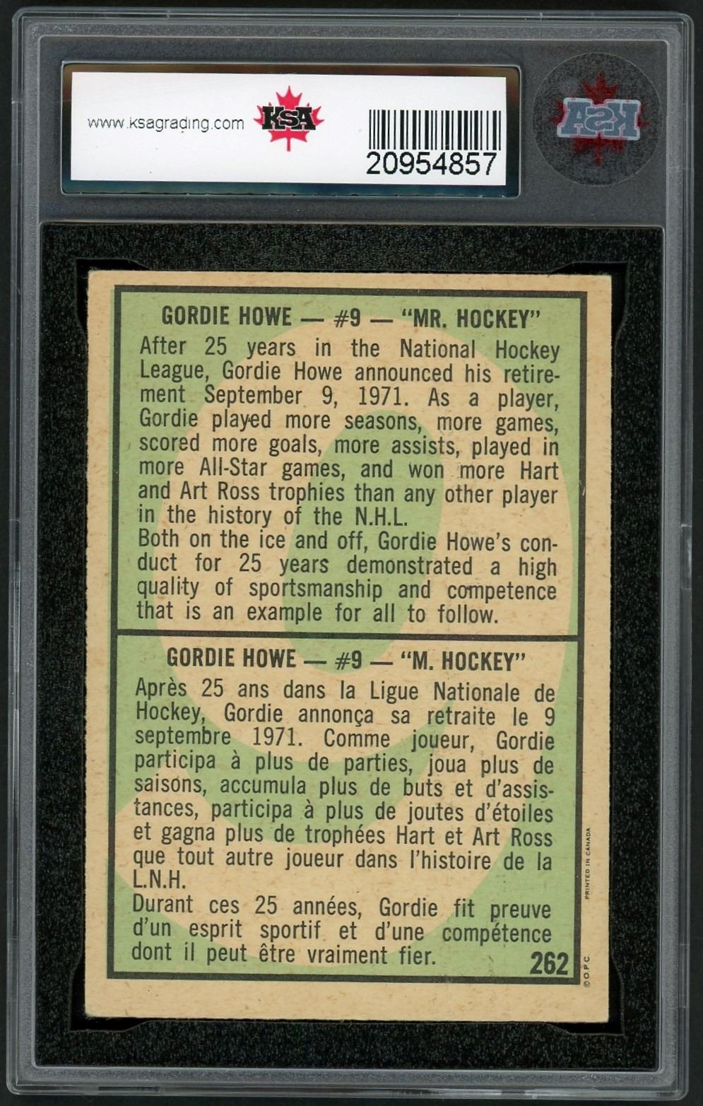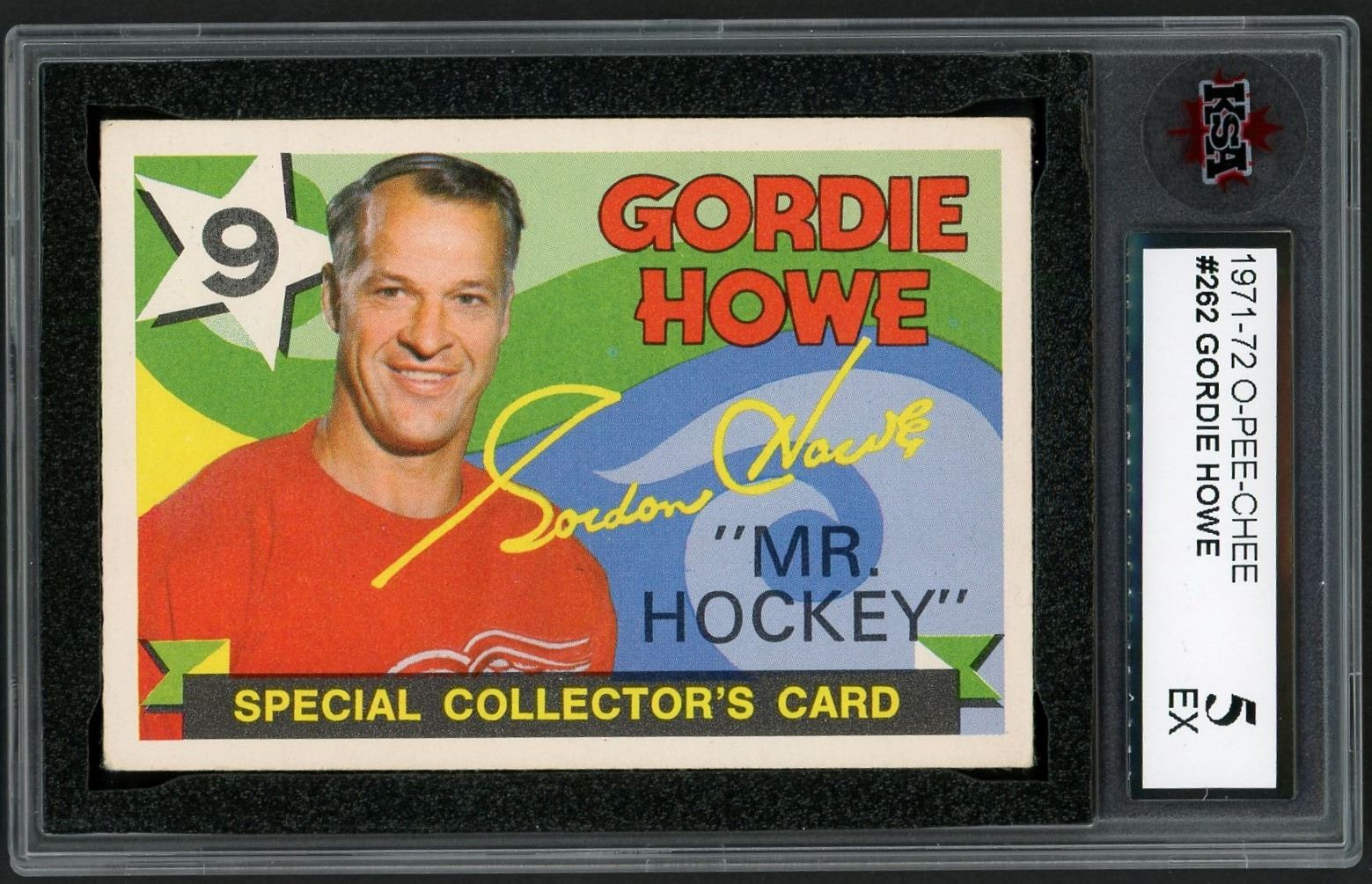 Nice mid-grade Gordie Howe special collector's card (retirement) from the 1971 OPC set, graded 5 EX by KSA.