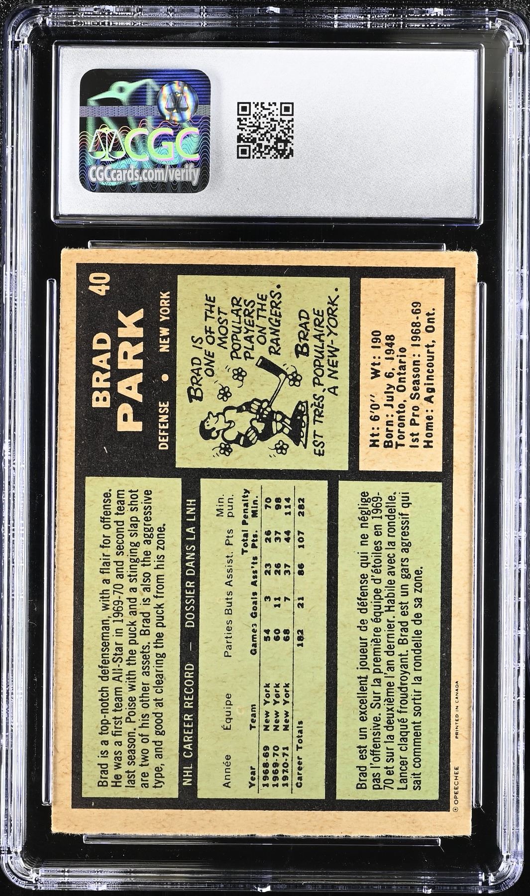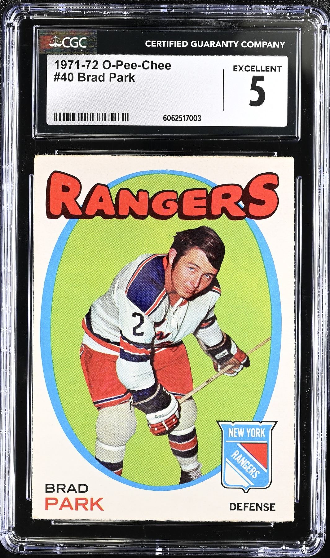 Nice 2nd year card of HOF defenseman Brad Park. Graded 5 EX by CGC.
