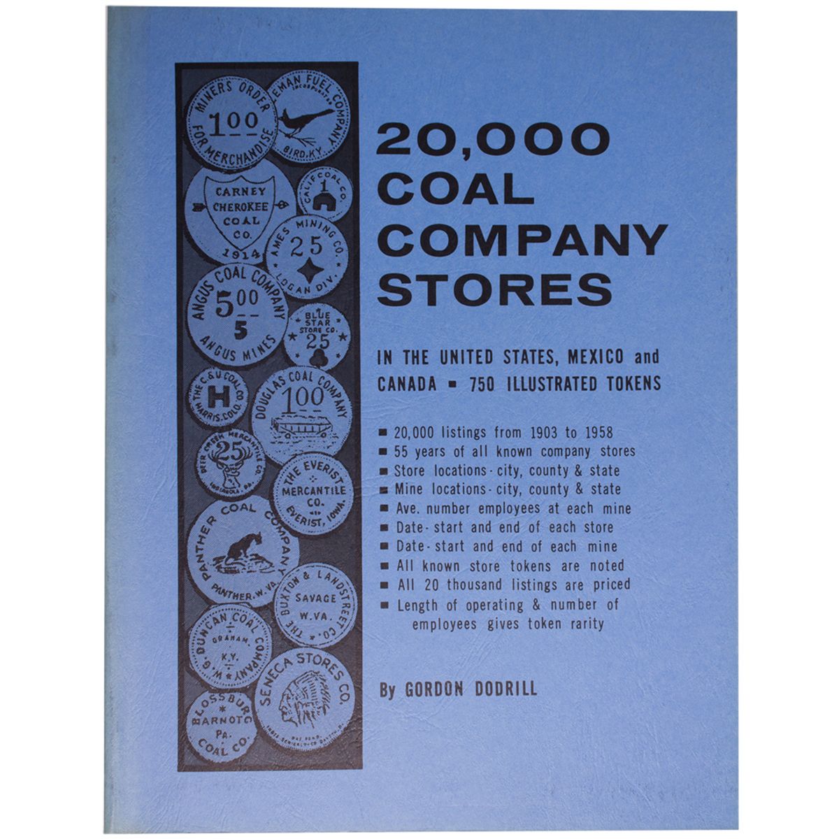 Dodrill, Gordon. 20,000 Coal Company Stores in the United States, Mexico and Canada. With 750 illustrated tokens. Over 20,000 listings from 1903-1958 with store location, mine location, average number of employees, start and end dates. All of this allows the tokens to be priced based on rarity. Dodrill's substantial research would be perfect for your token reference library. 1971. Soft bound. 287 pp. 8.5" x 11". - Vinegar Collection
