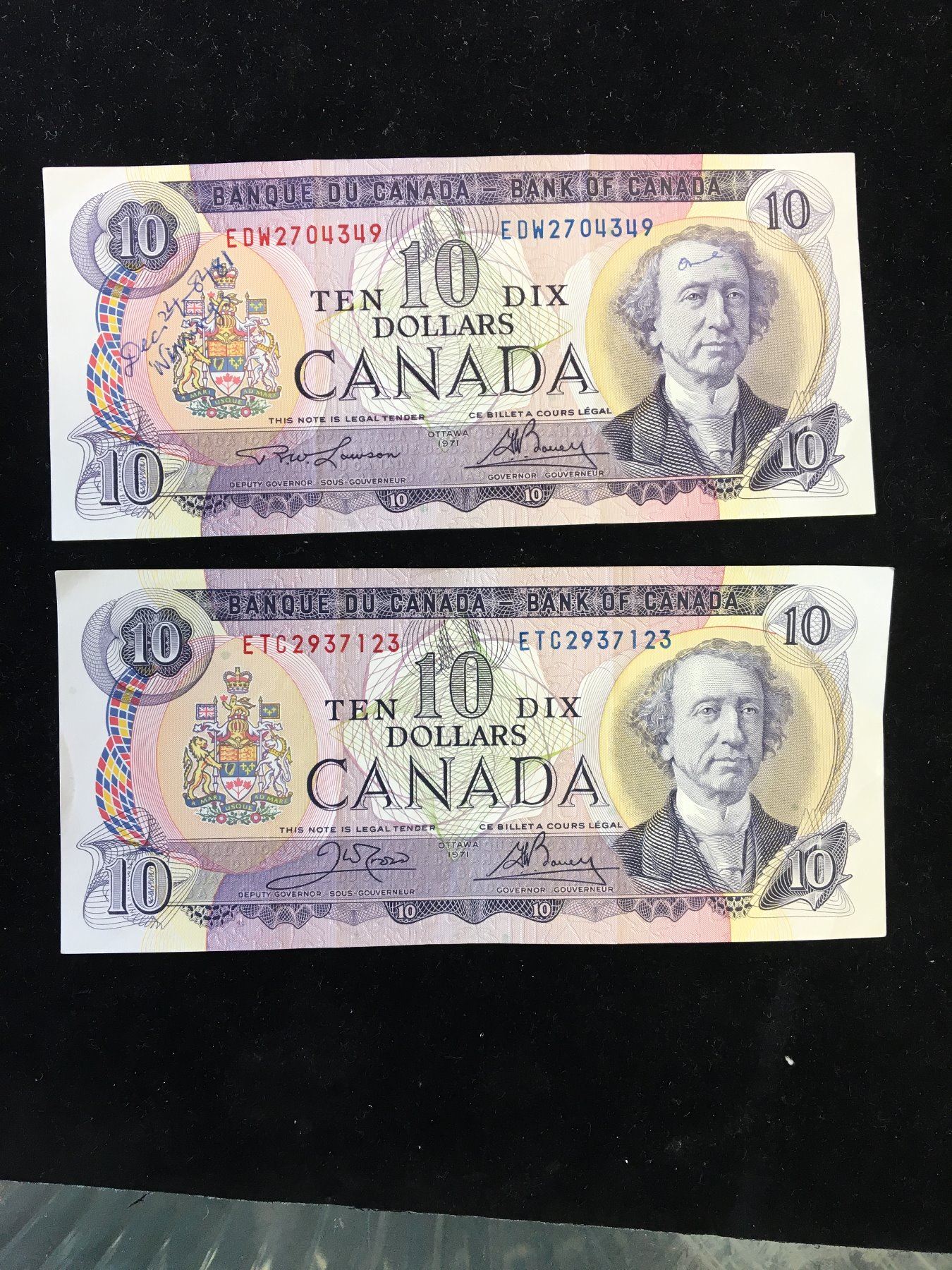 NICE LOT OF 2 EF NOTES.ONE LAWSON/BOUEY AND CROW/BOUEY.SHOWS GRAFITTION BOTH NOTES.