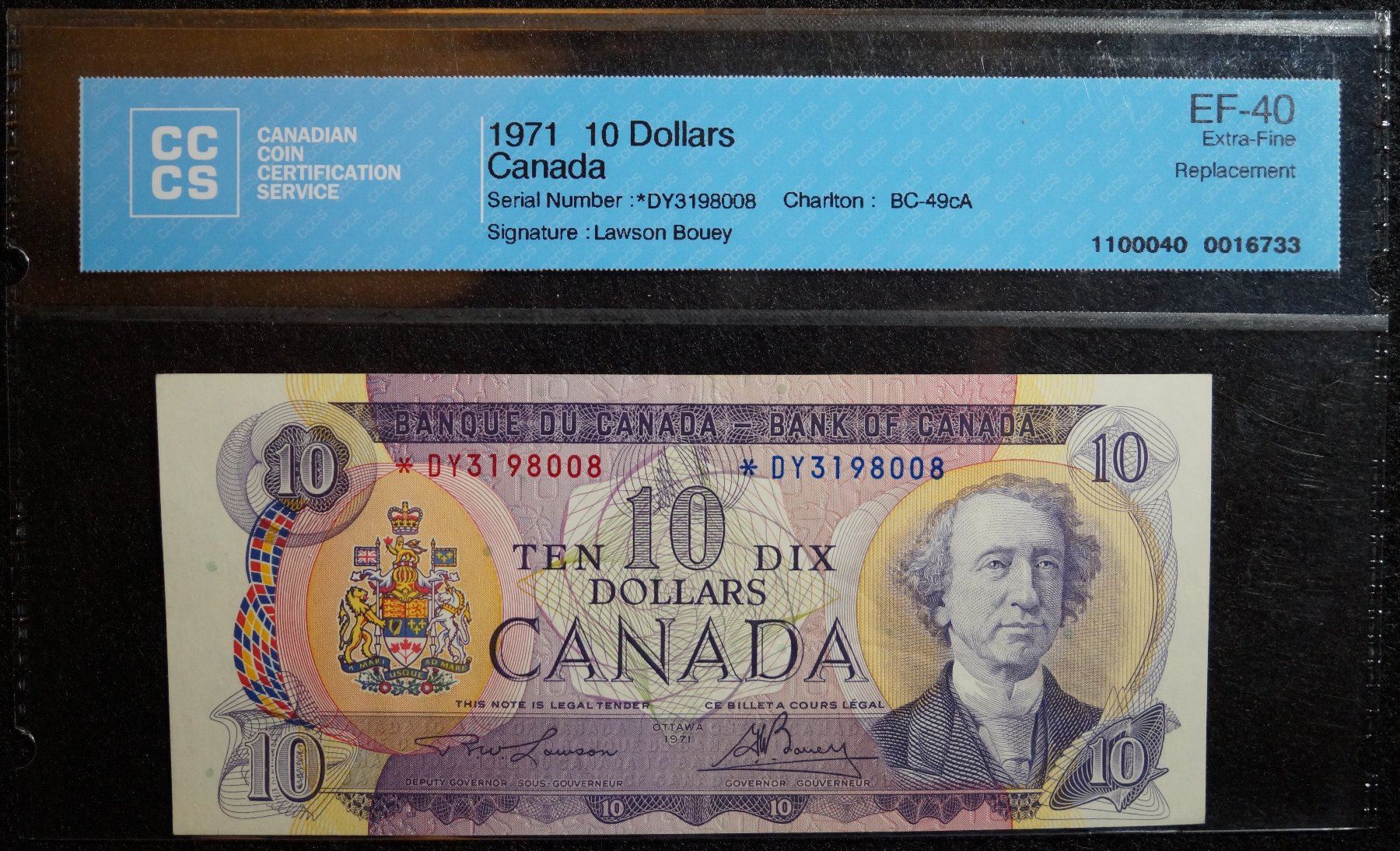1971 - BC-49aA - 10 Dollar - Replacement
