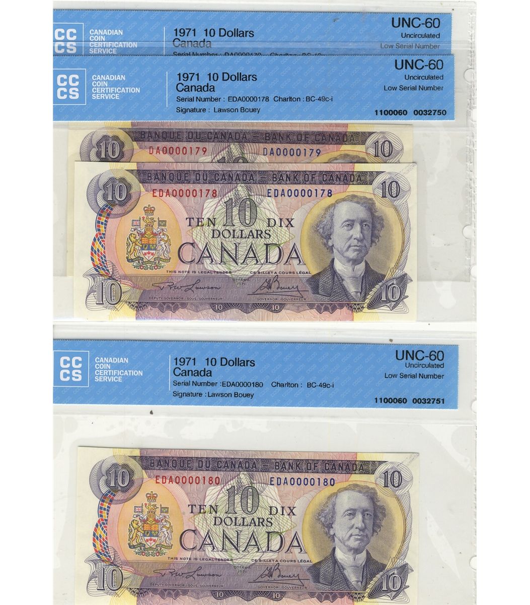 1971 BC-49c-i #0000178, 179 & 180 Low Serial Number CCCS UNC-60.