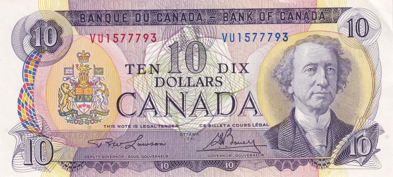 1971 Bank of Canada $10 Bank Note - Lawson / Bouey - VU Series - Uncirculated With Counting Fold