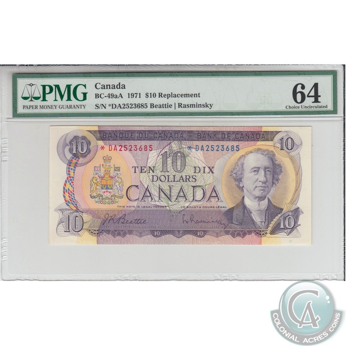 1971 Bank of Canada $10 Beattie-Rasminsky *DA Replacement, BC-49aA, PMG Certified Choice UNC-64.