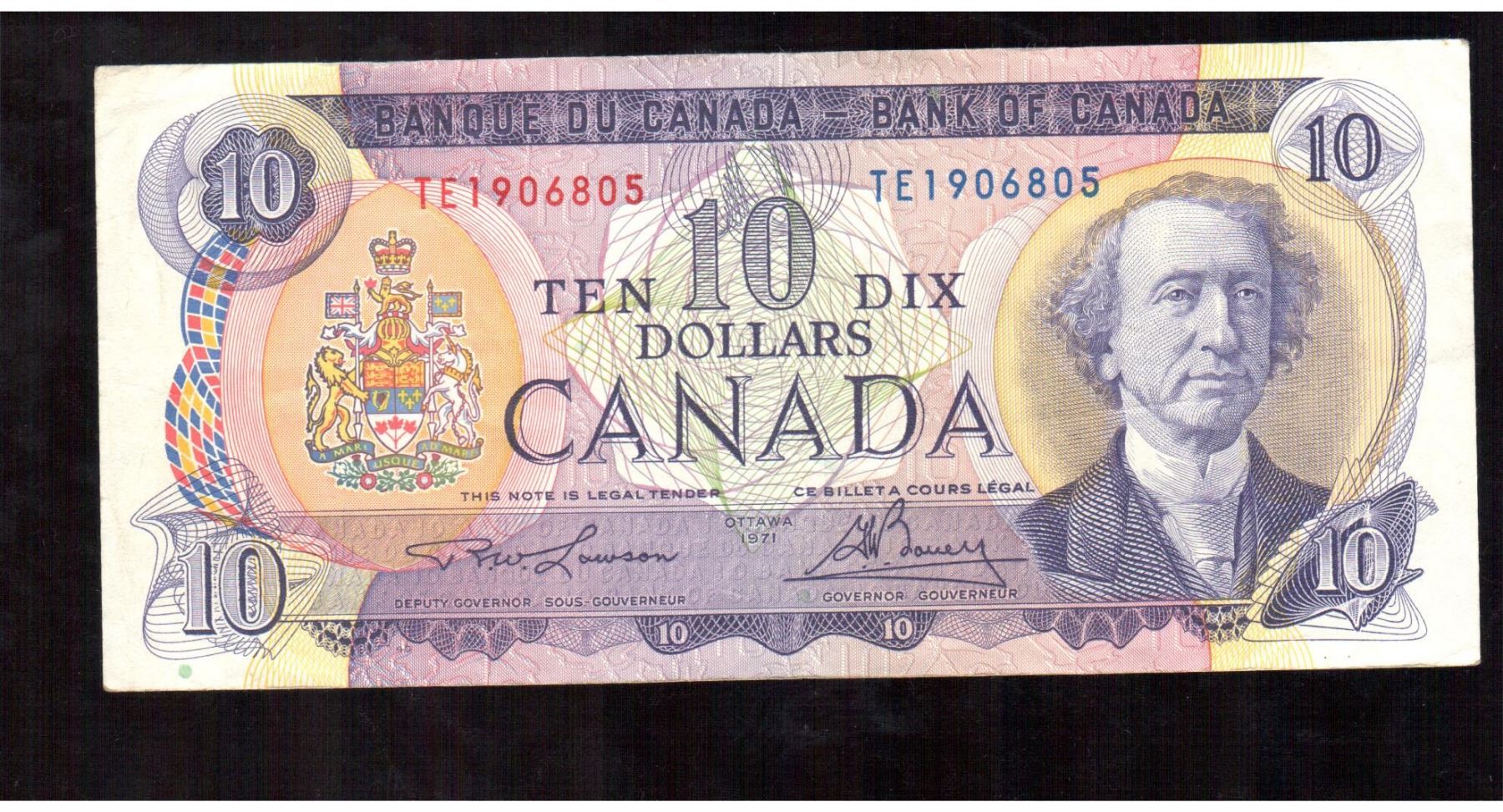 Lot 126; Dates Include 1971, $10 Bank of Canada Note, Lawson-Bouey, TE1906805, VF-EF