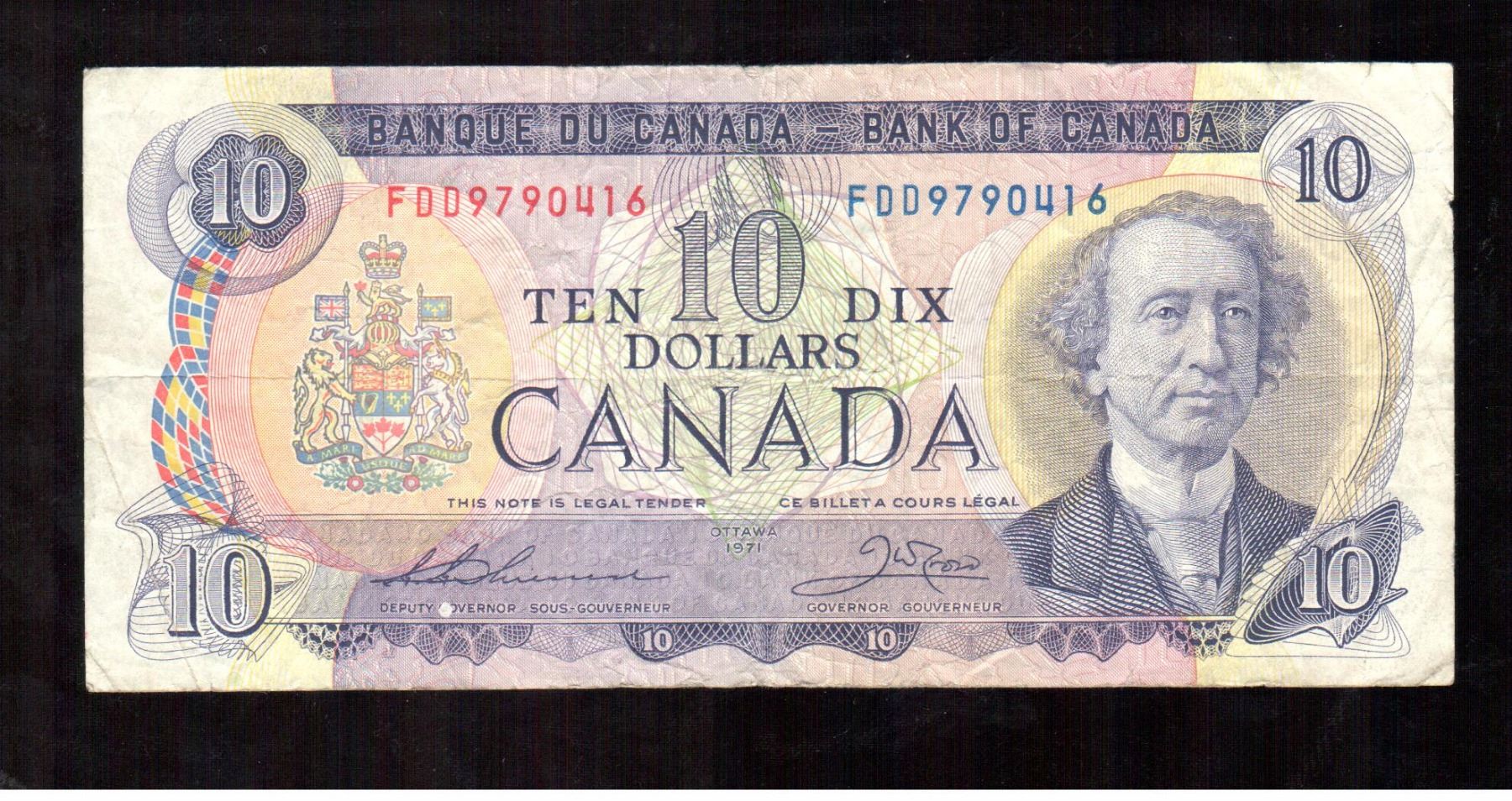 Lot 100; Dates include 1971, $10 note Thiessen-Crow FDD Prefix F-VF average grade