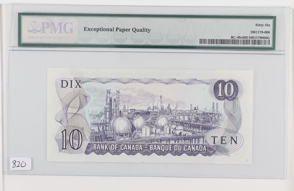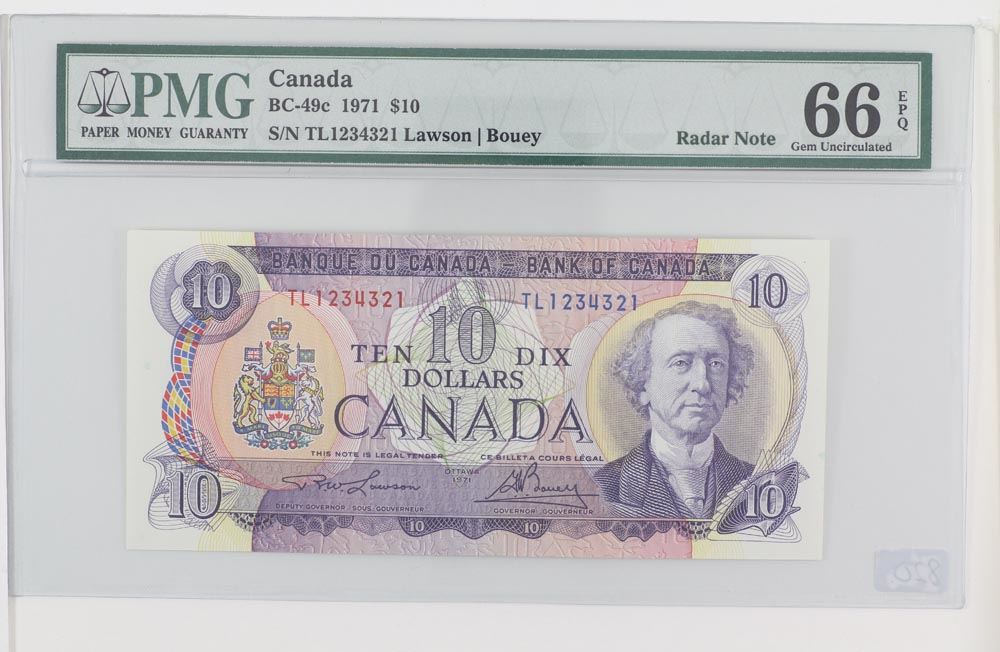 1971 Bank of Canada Ascending/Descending Ladder $10. BC-49c, S/N: TL1234321, PMG GUNC-66, EPQ