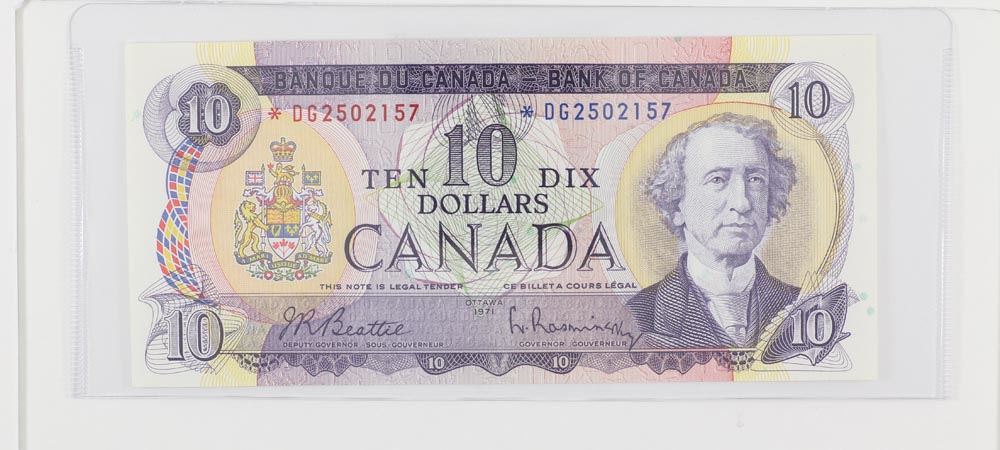1971 Bank of Canada Replacement $10. BC-49aA, S/N: *DG2502157, Choice UNC